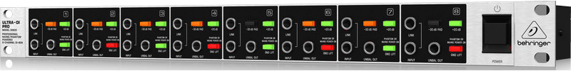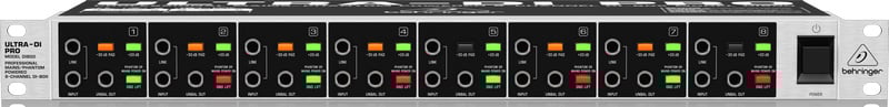 The Behringer ULTRA-DI PRO DI800 is a professional and multi-purpose mains/phantom powered 8-Channel DI-Box for stage and studio applications. If you need a rack-mountable DI unit with enough inputs to accommodate everyone on stage, or in the studio - then you need to plug into the DI800!