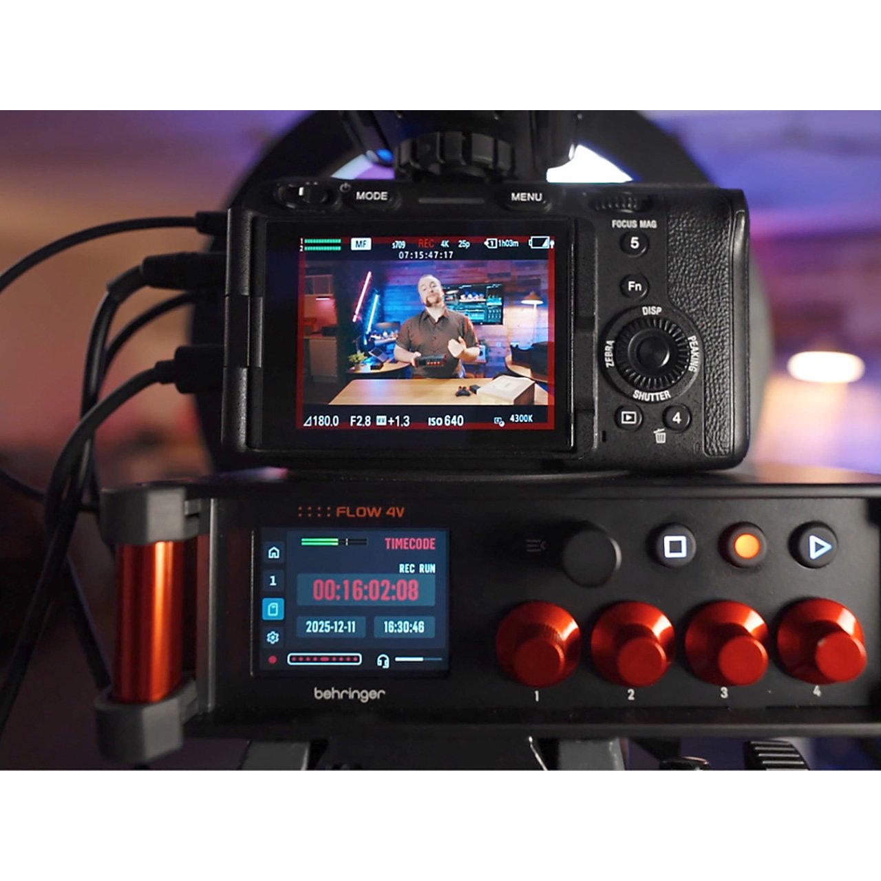 Record every source as its own track while simultaneously creating a finished stereo mix. FLOW 4V is a true 10-track multitrack recorder built for video workflows. Fast on set, flexible in post.