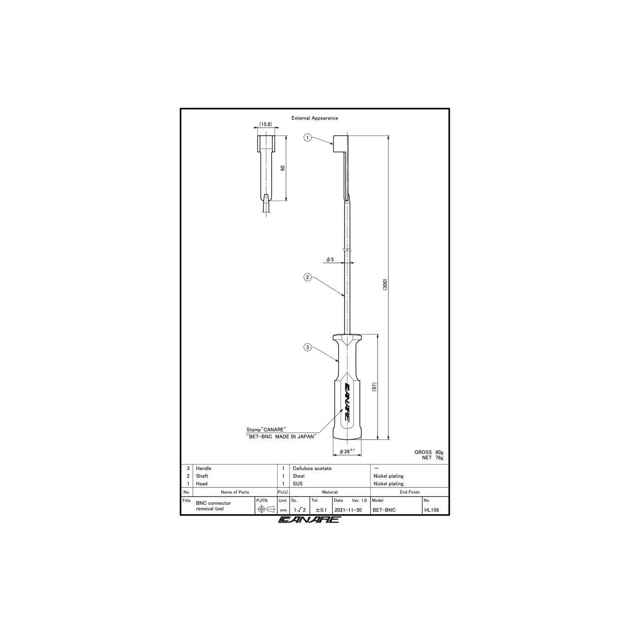 Canare BET-BNC Heavy-Duty 12 Inch Extraction Tool for Straight BNC Plugs