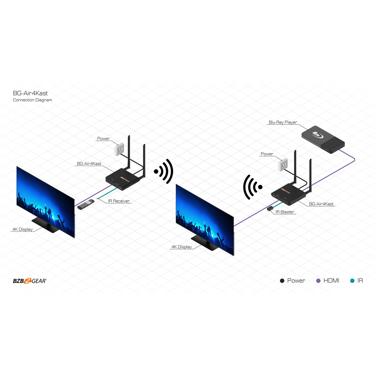 The BG-Air4Kast is an advanced 4K@60Hz HDMI wireless extender solution consisting of a transmitter and a receiver. It leverages ipcolor STREAM technology for high-definition and low-latency video transmission. Operating on the 5G wireless frequency band, it delivers stability, anti-interference capabilities, and safety. The extender supports wireless transmission up to 50 meters, offering a solution for wirelessly transmitting video in applications such as video conferences, home entertainment, and multimedia education.