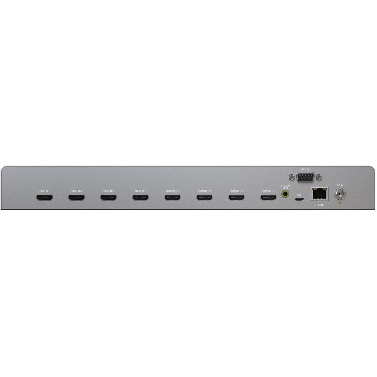 The BG-UHD-44M supports a maximum resolution of 4K@60Hz 4:4:4 with HDR. With 18 Gbps of uncompressed bandwidth, HDMI signals are routed with no loss of quality. All HDMI ports on this matrix are HDCP 2.2, HDCP 1.x, and DVI compliant. This device is also equipped with auto Downscaling on all outputs, ensuring compatibility with legacy displays. The BG-UHD-44M supports up to 7.1 channels of high-quality audio including Dolby Digital, DTS-HD, and Dolby TrueHD audio formats.