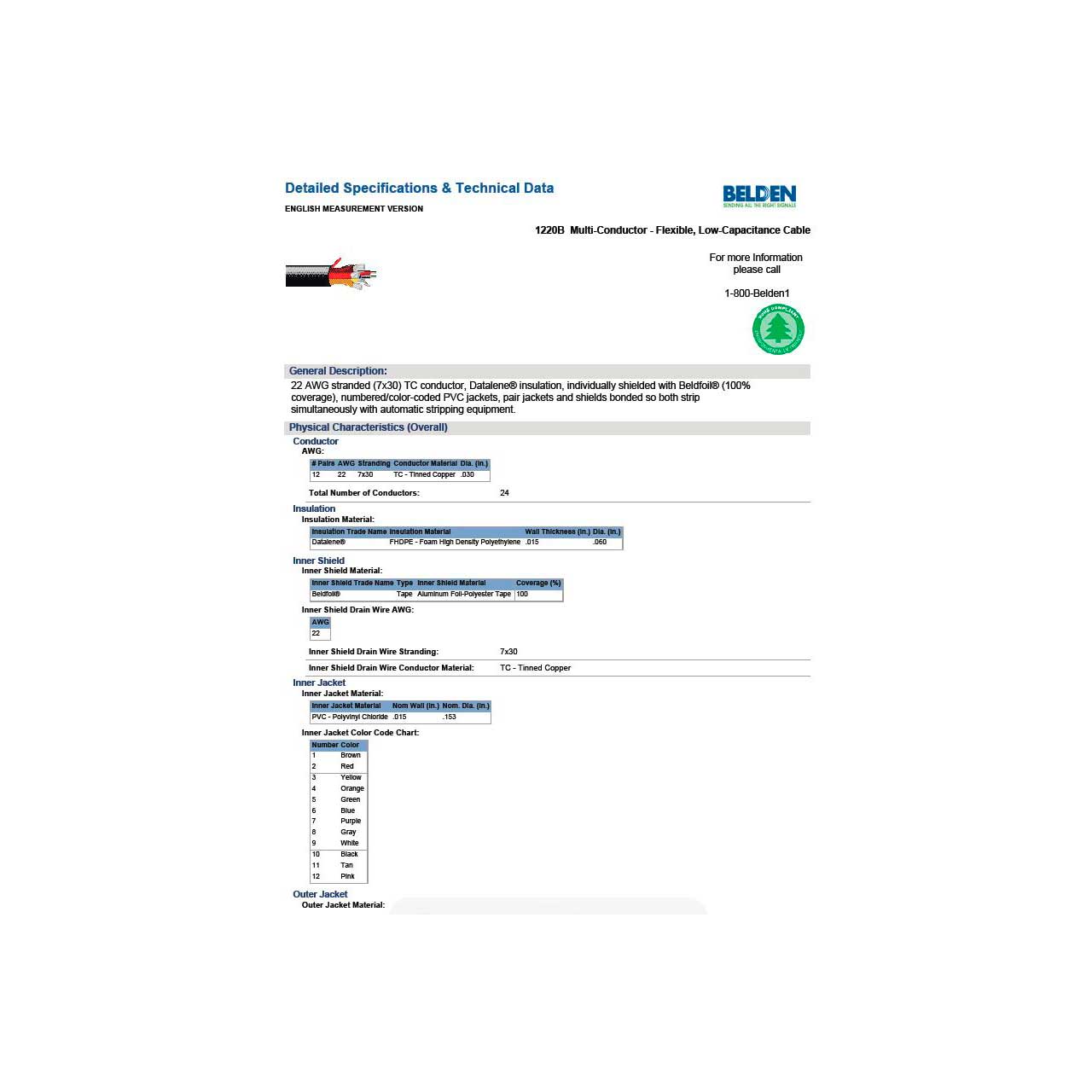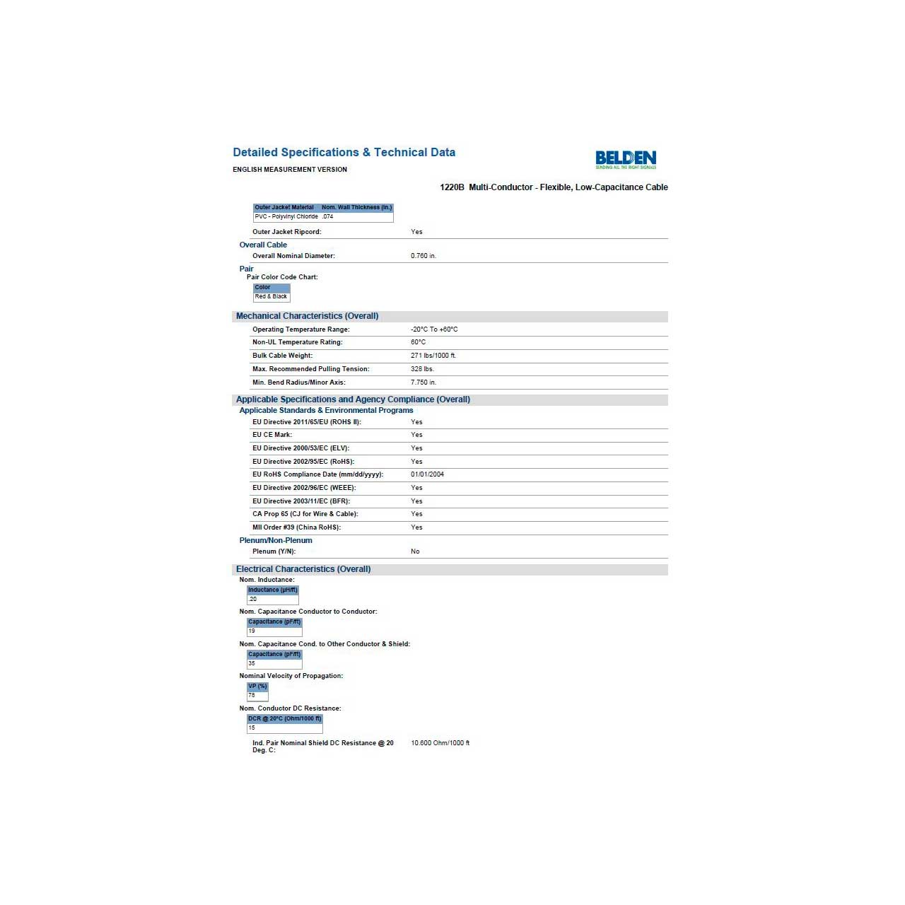 • Individual Pair Nominal Shield DCR: 10.6 Ohm/1000ft