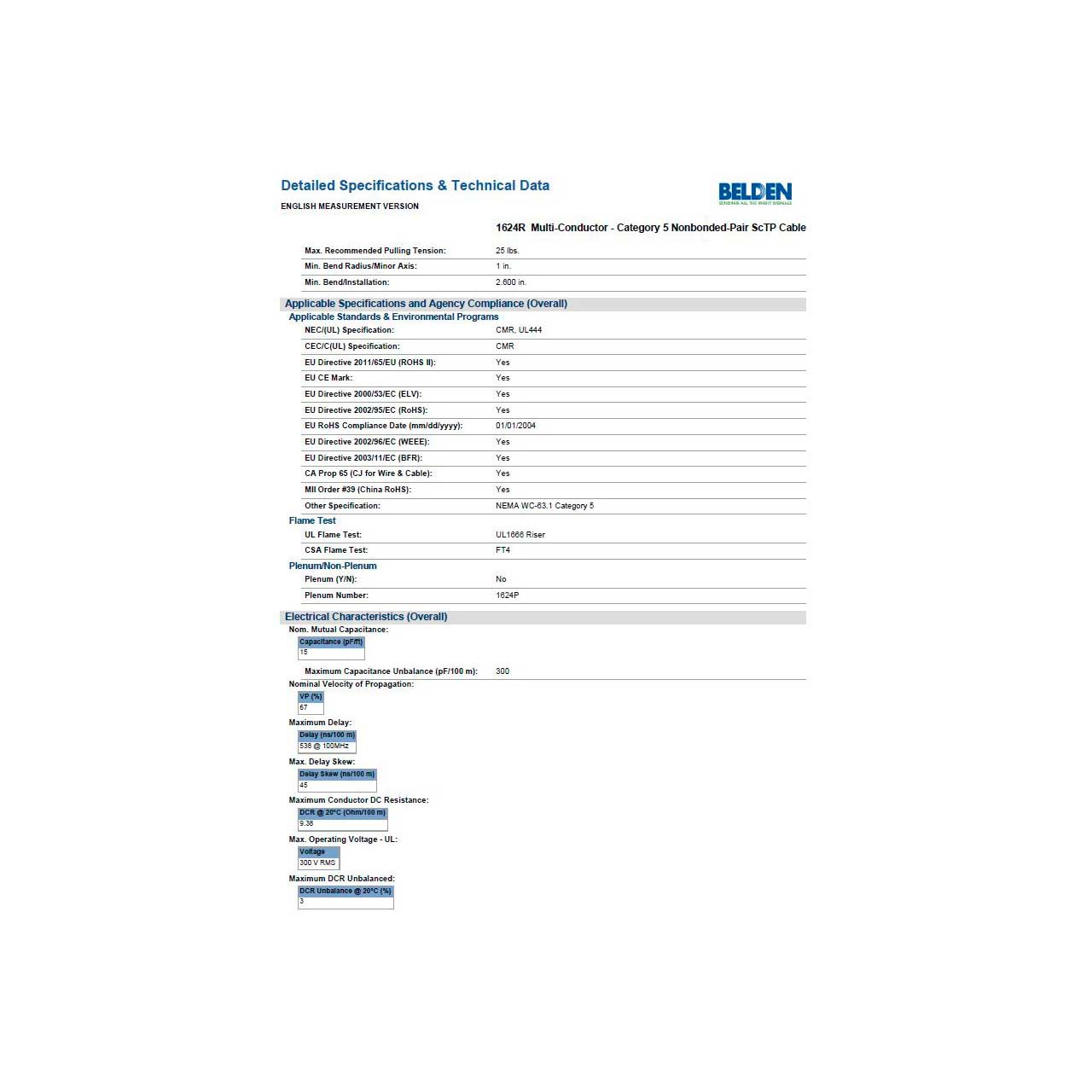 CAT5 (100MHz), 4-Pair, F/UTP-Foil shielded, Riser-CMR, Premise Horizontal Cable, 24 AWG solid bare copper conductors, Polyolefin insulation, Beldfoil shield, ,PVC jacket, RJ-45 compatible.