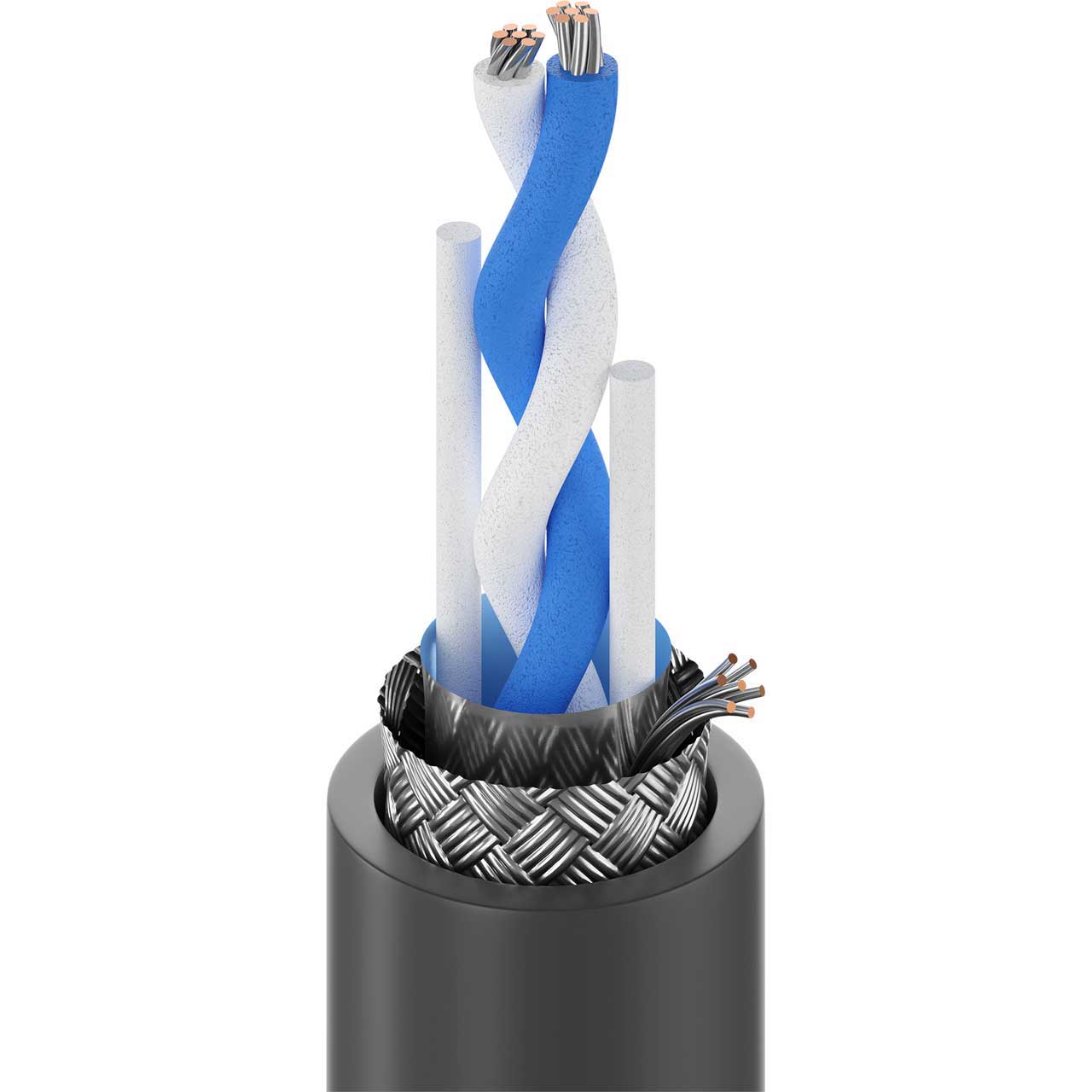 Belden 1696A Digital Audio Cable, 1 Pair 22 AWG (7 x 30) Tinned Copper, Datalene® Insulation, Overall Beldfoil® Shield, 90% Tinned Copper Braid Shield, and PVC jacket. Suitable for Digital audio, Interconnect between audio equipment such as microphones, speakers, amplifiers, and mixing consoles applications.