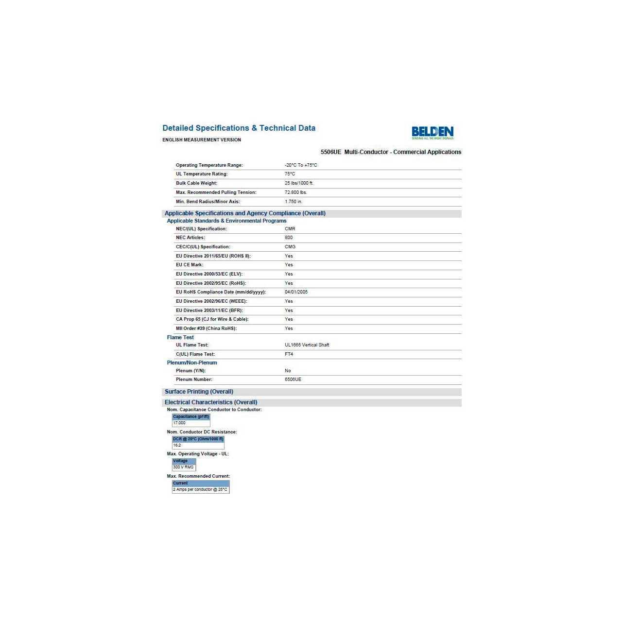 • Bulk Cable Weight: 37.205 Kg/Km