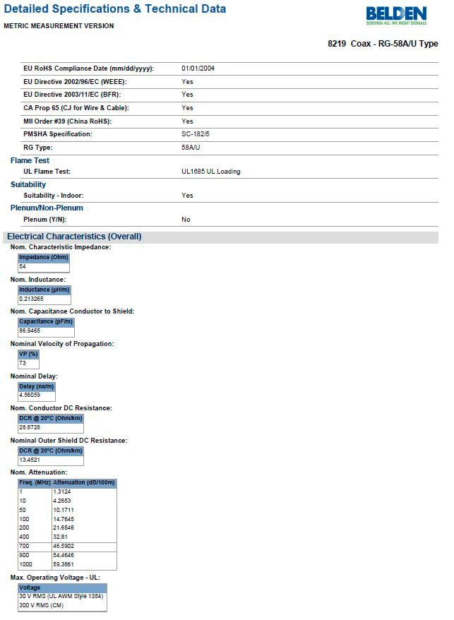 • Nom. Characteristic Impedance: 53.5O