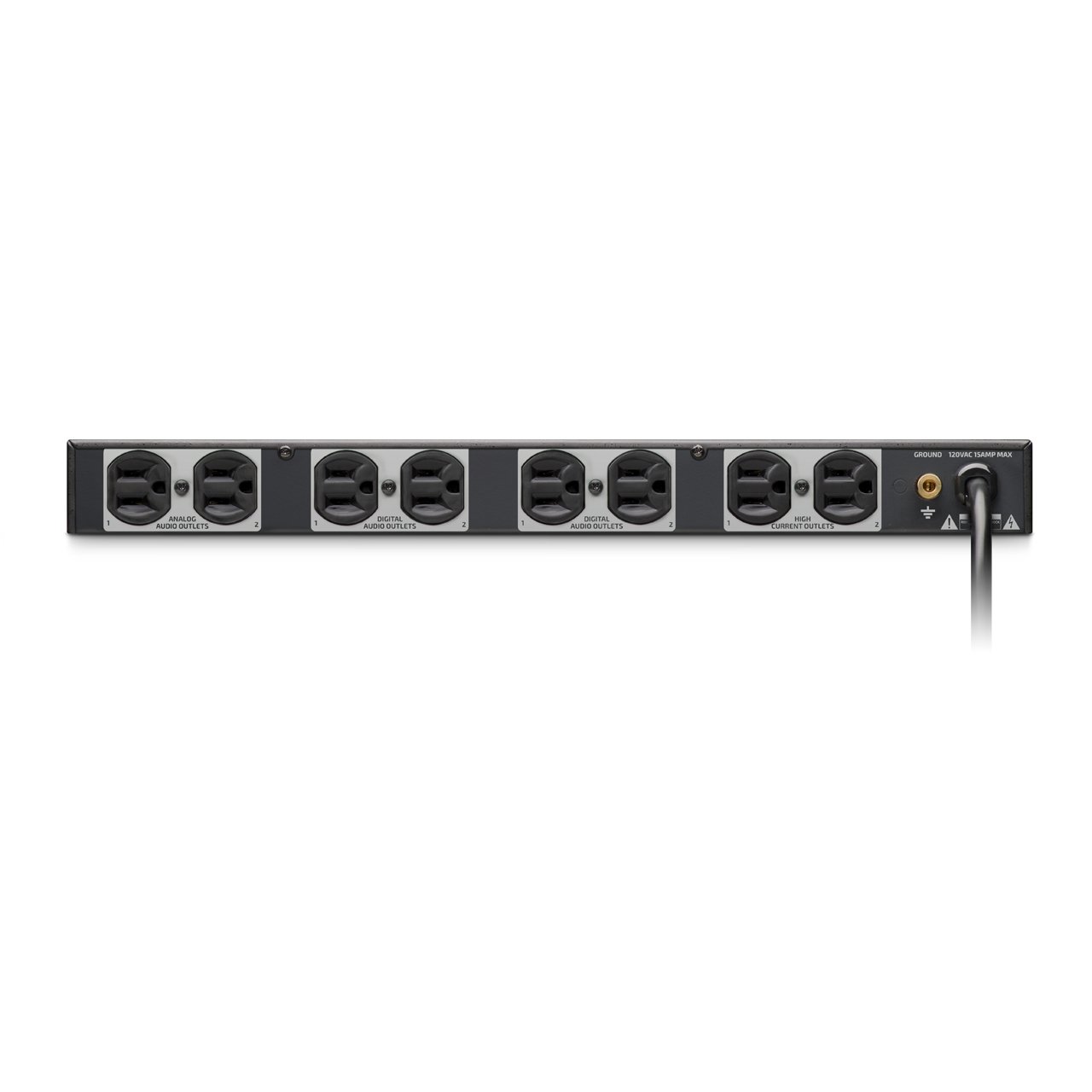 The PG-1 MKII features a bank of eight switched, filtered and surge protected outlets on the back panel - combined into four groups (Digital Audio x2, Analog Audio, and High Current). The High Current outlets are time delayed, always ensuring that your speakers and power amplifiers are the last to turn on, and the first to turn off - this prevents the dreaded "pop" that can occur if speakers receive power at the same time as your sound sources. The PG-1 MKII also features two filtered convenience outlets, a USB port for device charging, and an XLR lamp connection on the front panel.