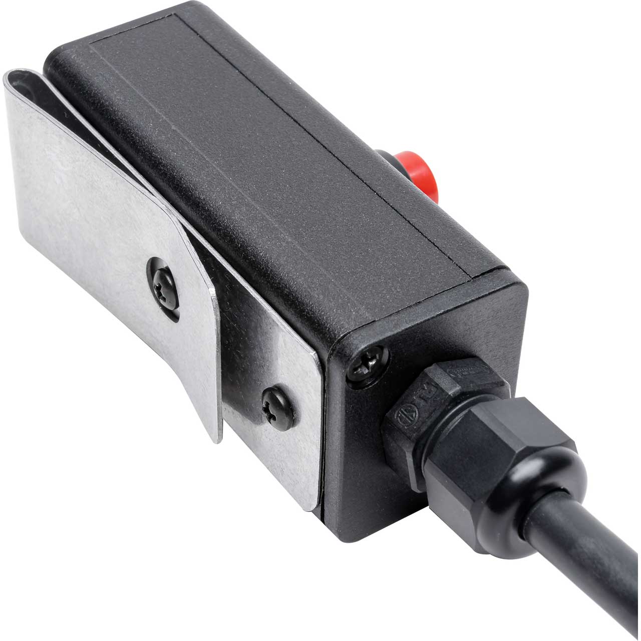 You can enable or disable the intercom line at any time. A latching push-on/push-off red PTT button allows the operator to remotely control the PL. Talking is enabled when the button is down and in the ON position, push the button again to the up position and the mic is muted. The heavy duty spring steel belt clip holds the adapter in place in the harshest environments and the extruded aluminum housing shields the unit from audio noise.