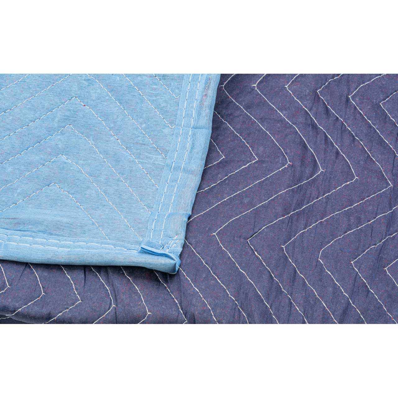 The BLANKET-1 Economy Moving Blanket with 36 ounces of filler per yard is made of pre-consumer cotton batting/filler with a durable polyester binding and zig-zag reinforced double-lock stitching to resist tears and hold the cushioning in place.