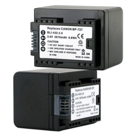 The BLI-432-2.6 is a 3.6V 2670MAH Li-ion battery pack that replaces a Canon BP-727 equivalent battery.