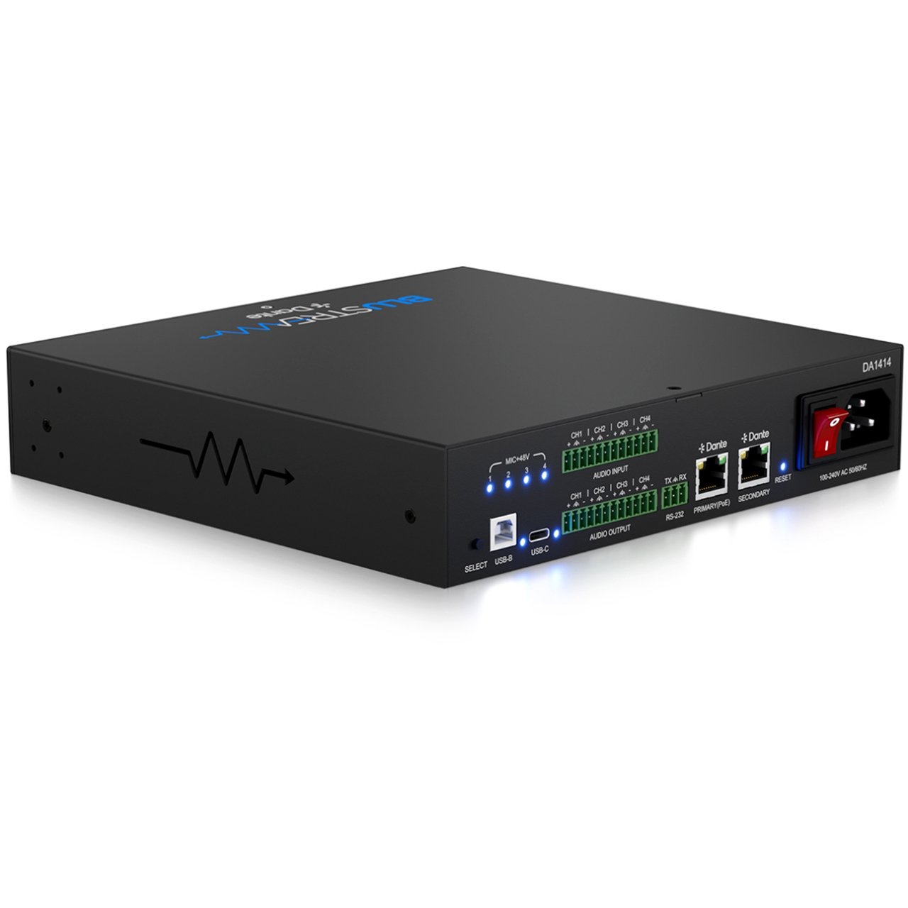 Equipped with 8x Dante/AES67, 4x balanced/unbalanced analog, and 2x USB audio inputs, it supports matrix routing and processing to 8x Dante/AES67, 4x balanced/ unbalanced analog, and 2x USB audio channels.