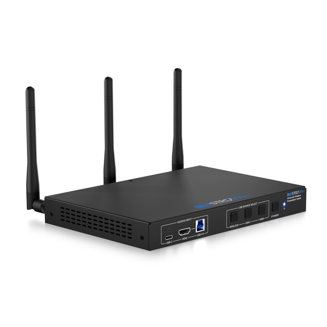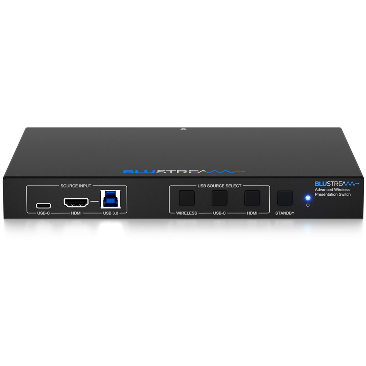 The Blustream WMF72 is an advanced 4K multi-format presentation switch featuring wired HDMI and USB-C, AirPlay, Miracastr and Chromecastr inputs to dual HDMI outputs.