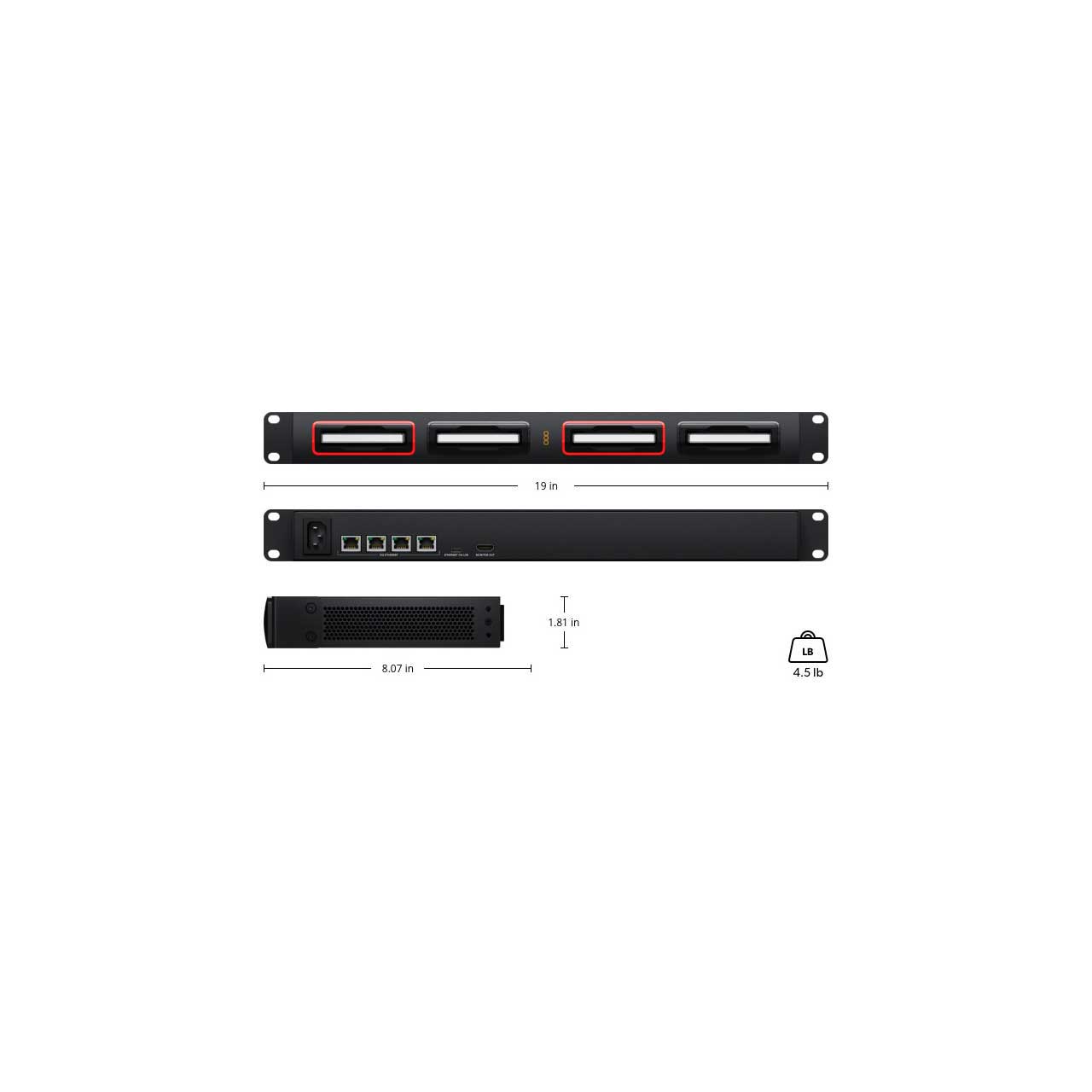 Blackmagic Cloud Dock 4 lets you share up to 4 independent 2.5 inch disks over a high speed 10G Ethernet network. Just plug in SATA HDDs and SSDs, or extreme performance U.2 disks for incredibly fast file reading and writing. You can also sync files globally using Dropbox and Google Drive sync and view all storage, connection and sync activity in real time on a display connected to the HDMI monitor port. Blackmagic Cloud Dock 4 has 4 10G Ethernet ports, an Ethernet over USB-C port and an internal power supply in a single rack unit making it highly portable network storage that's perfect for high end film and television use.