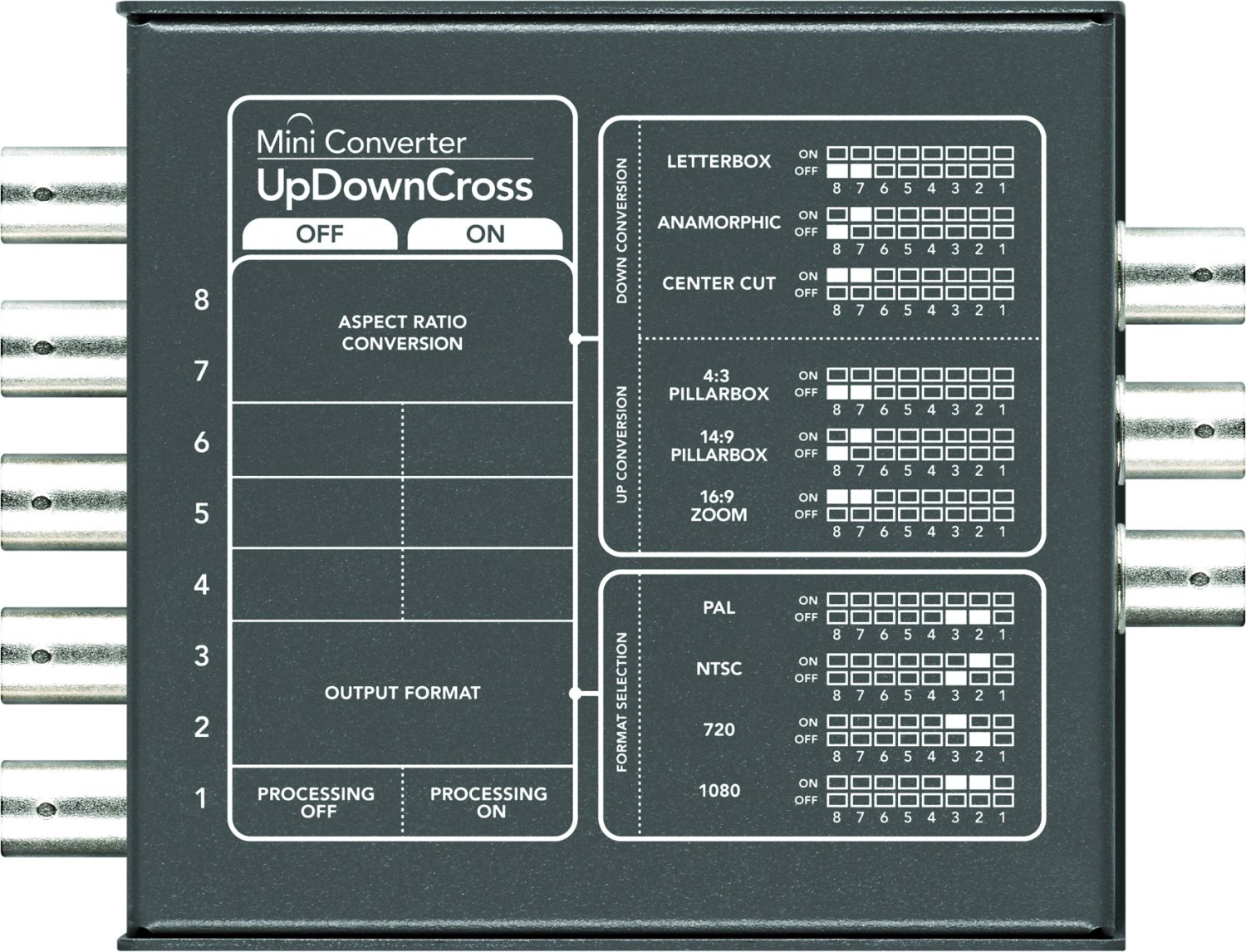 The Blackmagic Design Mini Converter - UpDownCross is designed for easy conversion between SD and HD video formats and features a 4-field standard converter. It allows you to convert 720p to 1080i or vice-versa, enabling editing and mastering in SD, 720p, and 1080i video. It uses the highest 10-bit SDI video quality with multi-tap image filtering and processing.