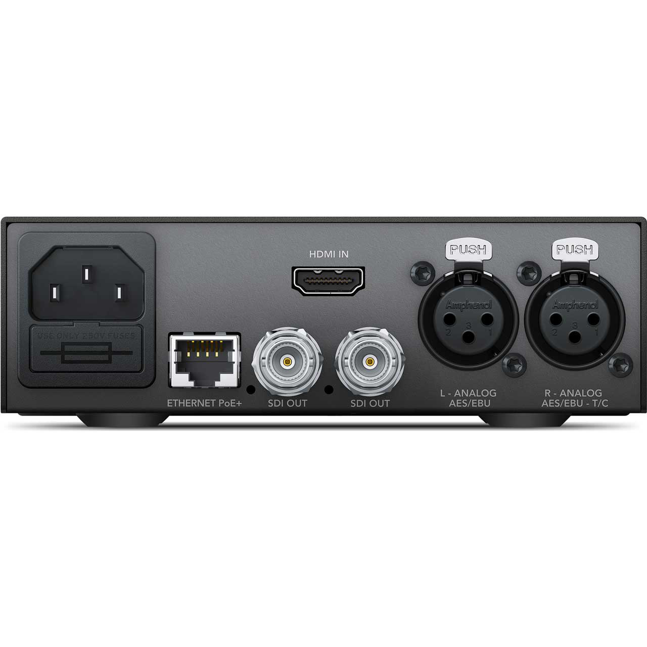 The Blackmagic BMD-CONVNTRM/AB/HSDI Teranex Mini HDMI to SDI 12G converts from HDMI to 12G-SDI. Works with all video formats including SD, HD, 6G and 12G-SDI rates and includes an up converter for converting HD to Ultra HD. Embed audio from balanced analog or AES/EBU and timecode input. Ideal for converting HDMI consumer cameras to SDI, or adding SDI outputs to computers with HDMI connections.