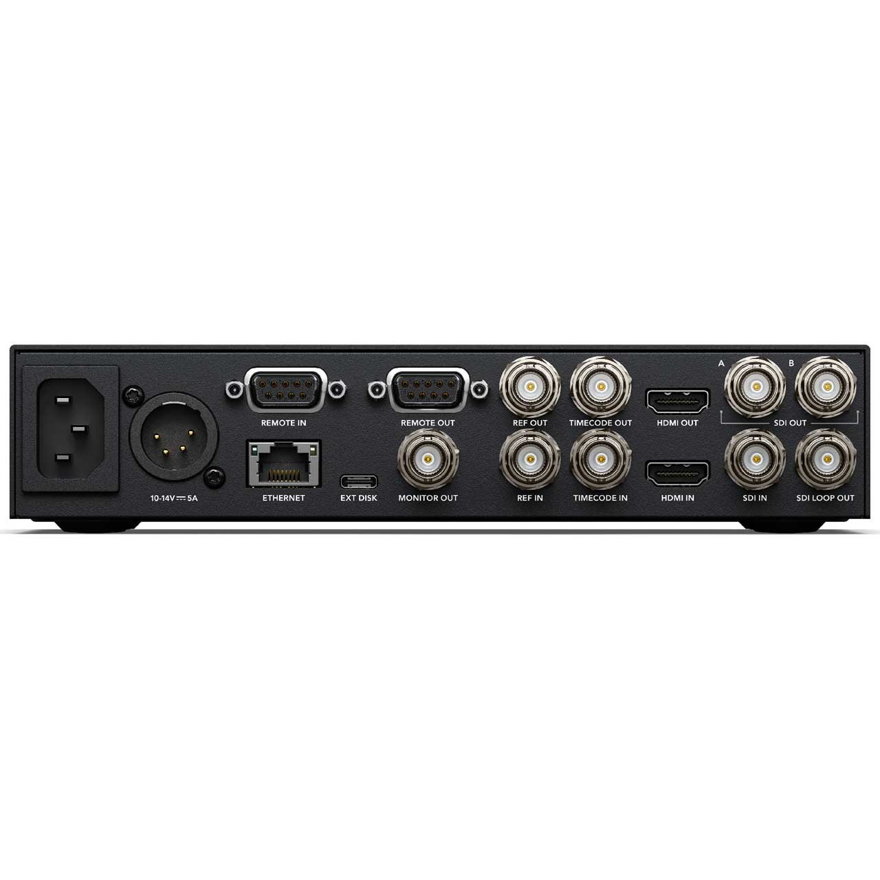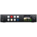 The Blackmagic Design HyperDeck Studio HD Plus includes all the features of the Mini model, but is larger so it has more space for extra controls and extra connections. This model adds 6G-SDI so it can record and playback ProRes up to Ultra HD 30fps, and it includes an SDI loop out and HDR support. Plus the two 6G-SDI outputs allow fill and key playback up to 1080p60. There is also an HDMI input and a dedicated 3G-SDI monitoring output with overlays. Any button pushed on the front panel is sent to a dedicated RS-422 remote output and the DC power is now a broadcast style XLR connector. The front panel is also upgraded with better transport control buttons, a headphone socket and built in speaker.
