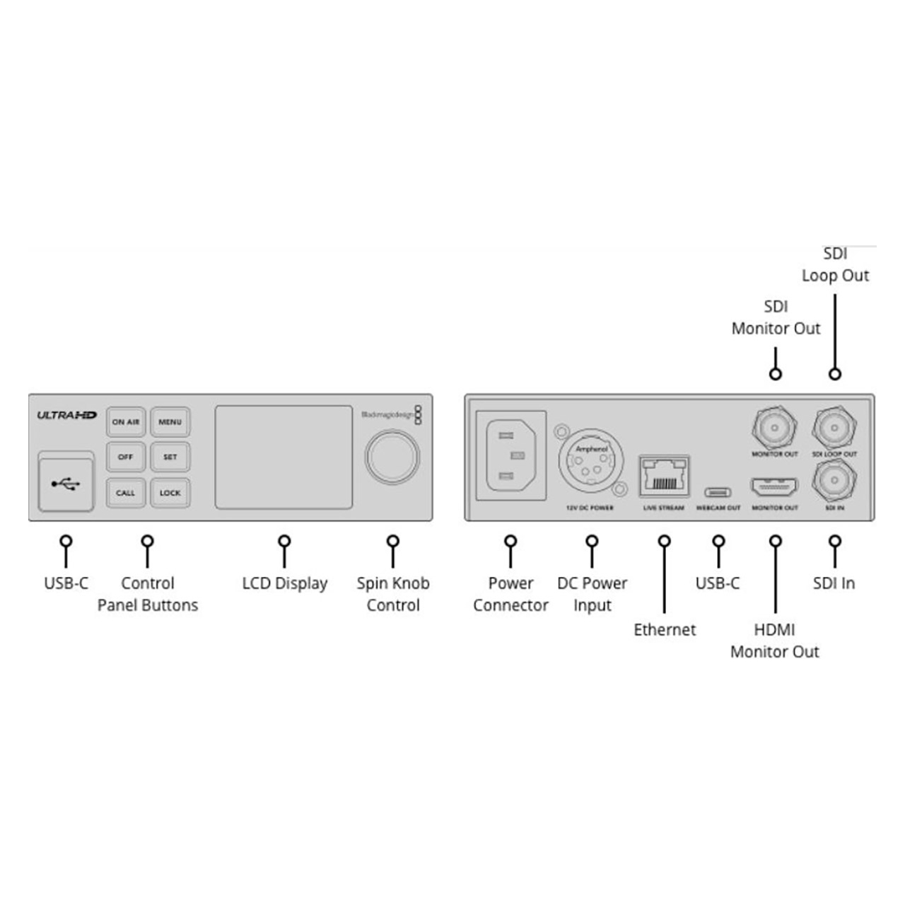 The Blackmagic Design Streaming Encoder 4K is powerful self-contained streaming processor with H.264 and H.265 streaming in HD or Ultra HD via SRT or RTMP protocols. Stream directly to services such as YouTube, Facebook, X and more. Plus you can stream to the internet using Ethernet or connect a 5G or 4G phone to use mobile data. Includes USB webcam, standards converted 12G-SDI input and streaming monitoring output.