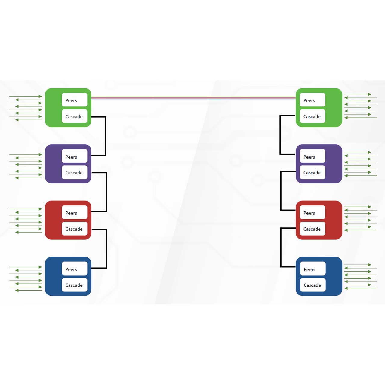 BarnColor can be coupled as a point to point link and will transmit/receive 4x SDI signals each way. This point to point connection can be done with any color