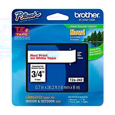 Brother TZe242 0.7 in x 26.2 ft (18 mm x 8 m) Red on White