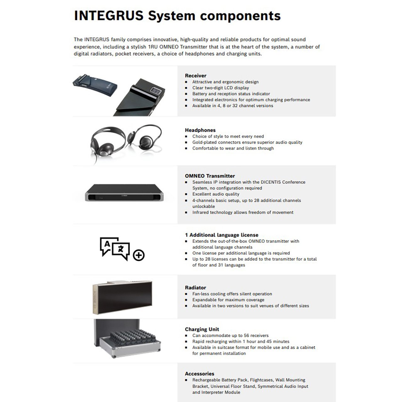 The INT-TXO is the central element in the INTEGRUS system that allows INTEGRUS to interact with the DICENTIS Conference System. The INT-TXO modulates the signals into carrier waves and transmits them to the radiators in the room. When connected to a DICENTIS system, the Transmitter OMNEO is fully controlled by DICENTIS and does not require any configuration. By utilizing the OMNEO transmitter, existing INTEGRUS systems can also take advantage of full IP connectivity and interconnectivity with DICENTIS conferencing devices. All existing INTEGRUS components are fully compatible. With its compact 1RU form factor, the device takes up only half the space of its predecessor.