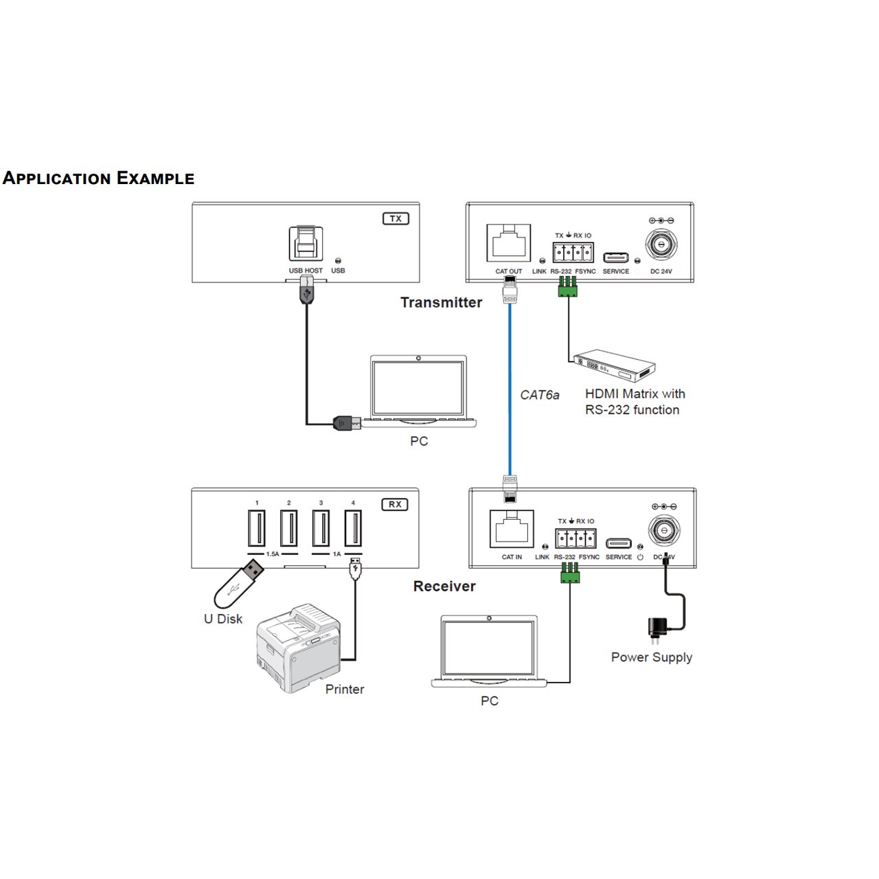 No software drivers are required, making installation quick and easy with true plug and play convenience. Simply connect the Transmitter to the source computer, extend with a single category cable, and connect the Receiver to as many as four USB devices.
