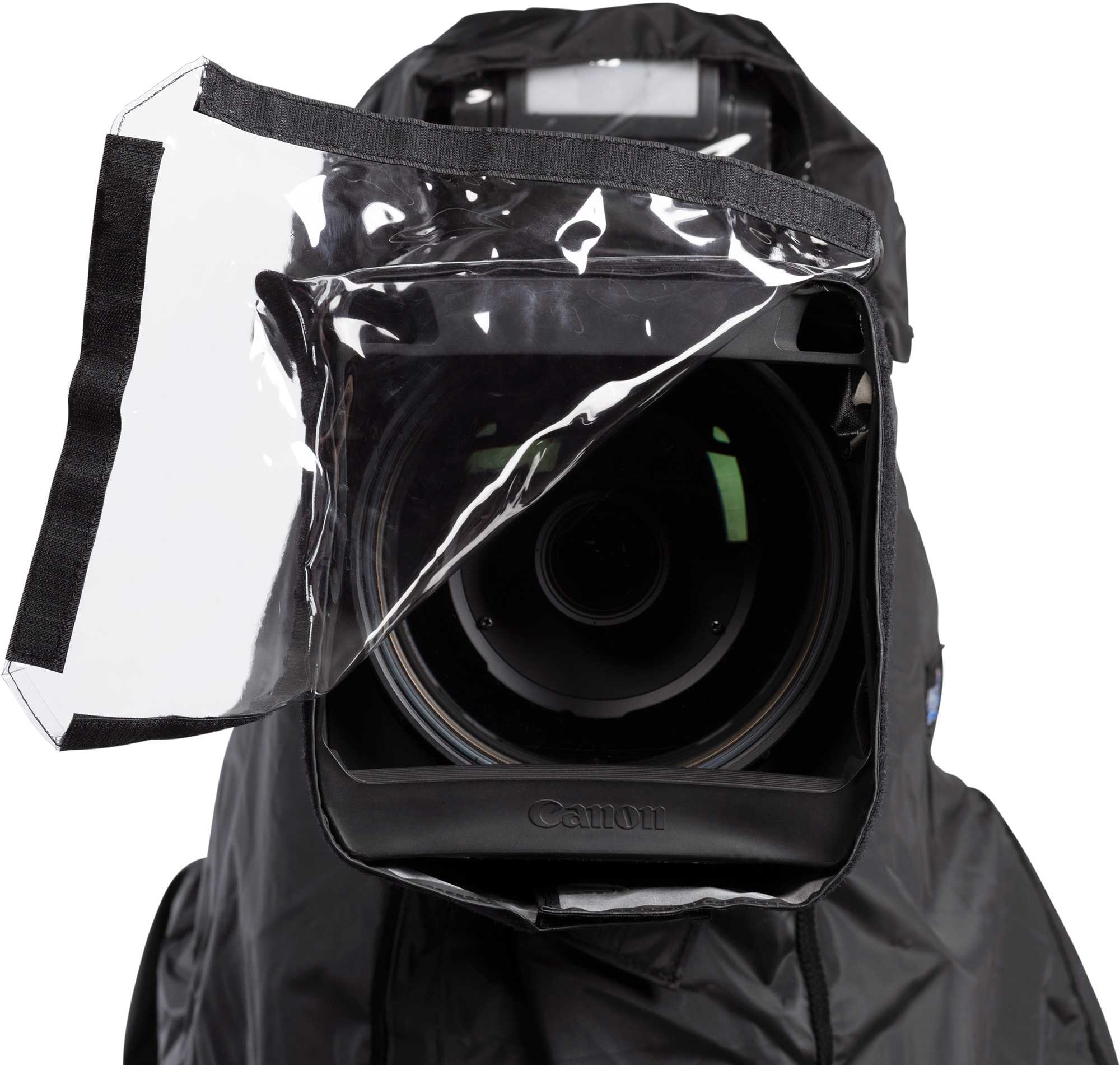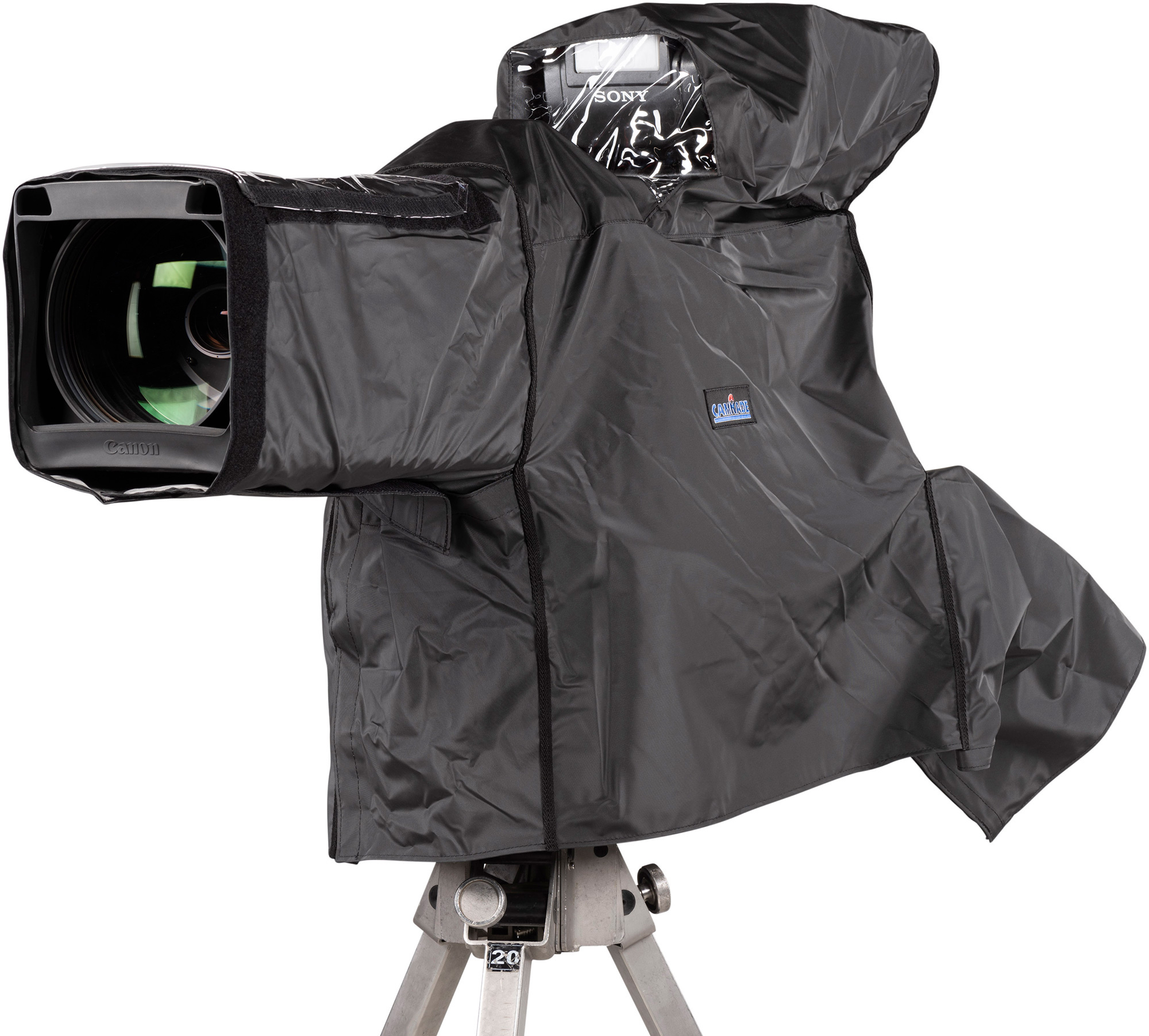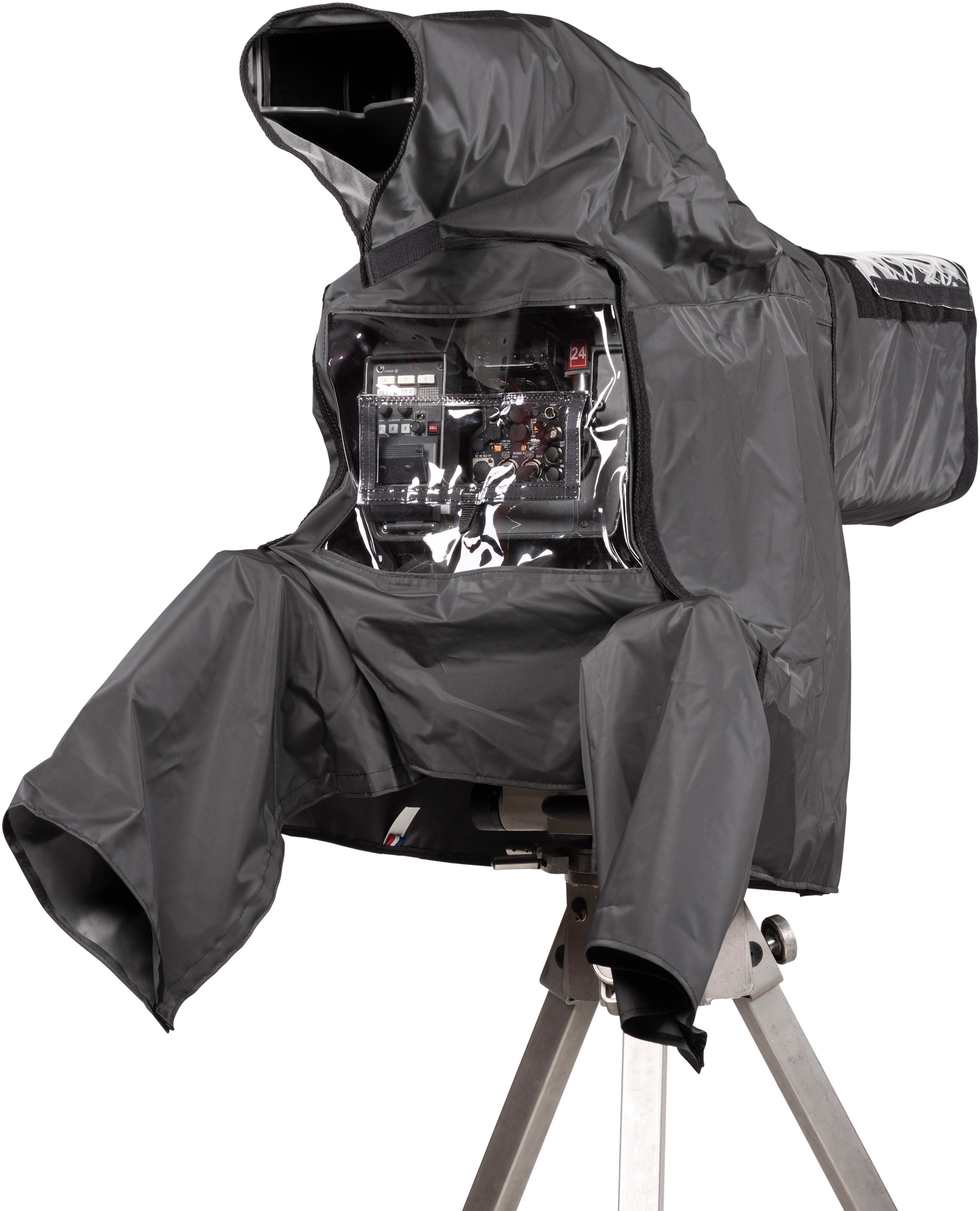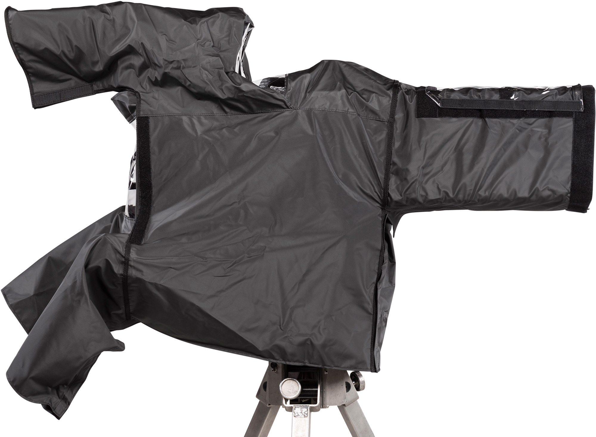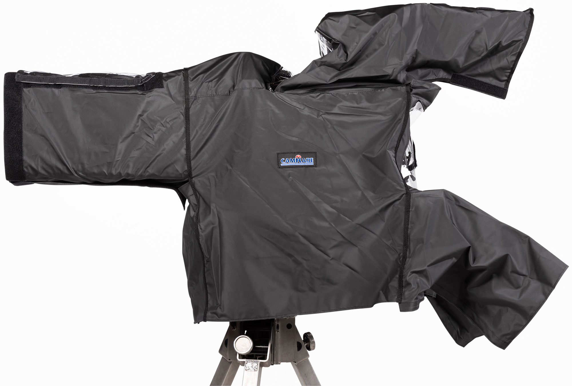 The camRade wetSuit EFP Large is a very strong rain cover designed for a wide range of outside broadcasting cameras using a large lens adaptor, viewfinder and viewfinder sun hood. The discrete grey fabric with soft lining minimalizes unwanted sound effects caused by wind and rain during operation and helps the camera not to stand out in a crowd.