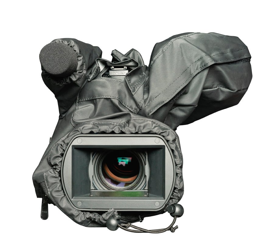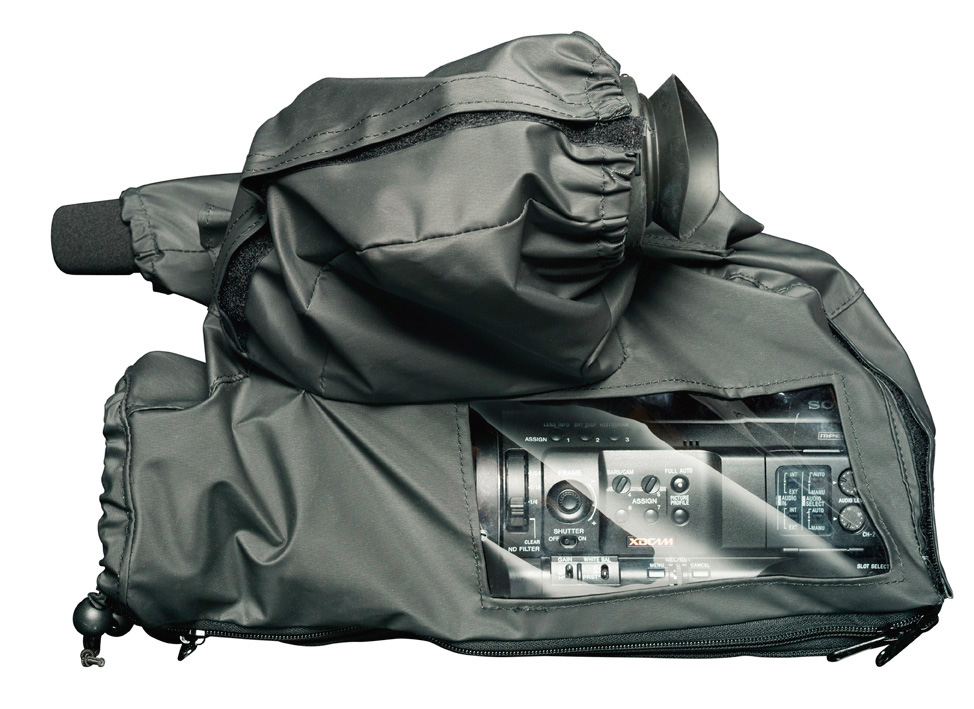 The camRade wetsuit Sony PMW 300 gives your camera optimal protection against the elements. This soft, flexible, waterproof PVC rain cover can be used around the Sony PMW 300 camera, protecting the camera’s body, but also the viewfinder and microphone. The rain cover has functional zipper closures on the underside, enabling you to put the camera on either your shoulder by taking out the camera’s shoulder pad, or use the camera on a tripod or rig. For access to the camera’s top handle, simply unfold the velcro closed opening on top of the raincover. The camRade WS PMW 300’s noiseless cotton interior fabric, unique to the camRade wetSuit, reduces unwanted sound effects caused by wind and rain. The cover has vinyl windows to view and access the controls, zoom and viewfinder. The WS PMW 300 is packed in a zippered pocket.