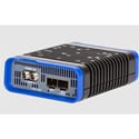 The converter includes two SFP cages with support for 10G and 25G Ethernet ports, a 1Gb copper Ethernet port for out of band management, support for SMPTE ST 2022-7 Seamless Switching up to Class C operation for WAN environments, support for NMOS IS-04/IS-05 control and management (both in-band and out-of-band), and in-band PTP support.