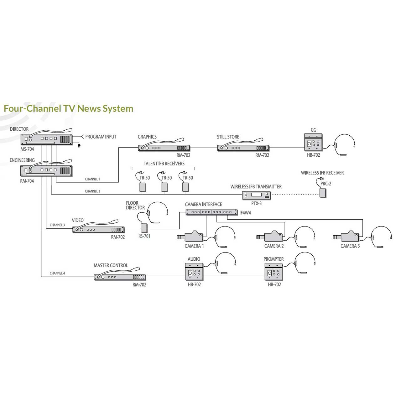 Please Note! This item is just one component of a larger system. Please refer to the diagram for ideas and recommendations for your Clear-Com intercom system. Although the HB-702 is pictured in the diagram, the HB-704 can be easily substituted.