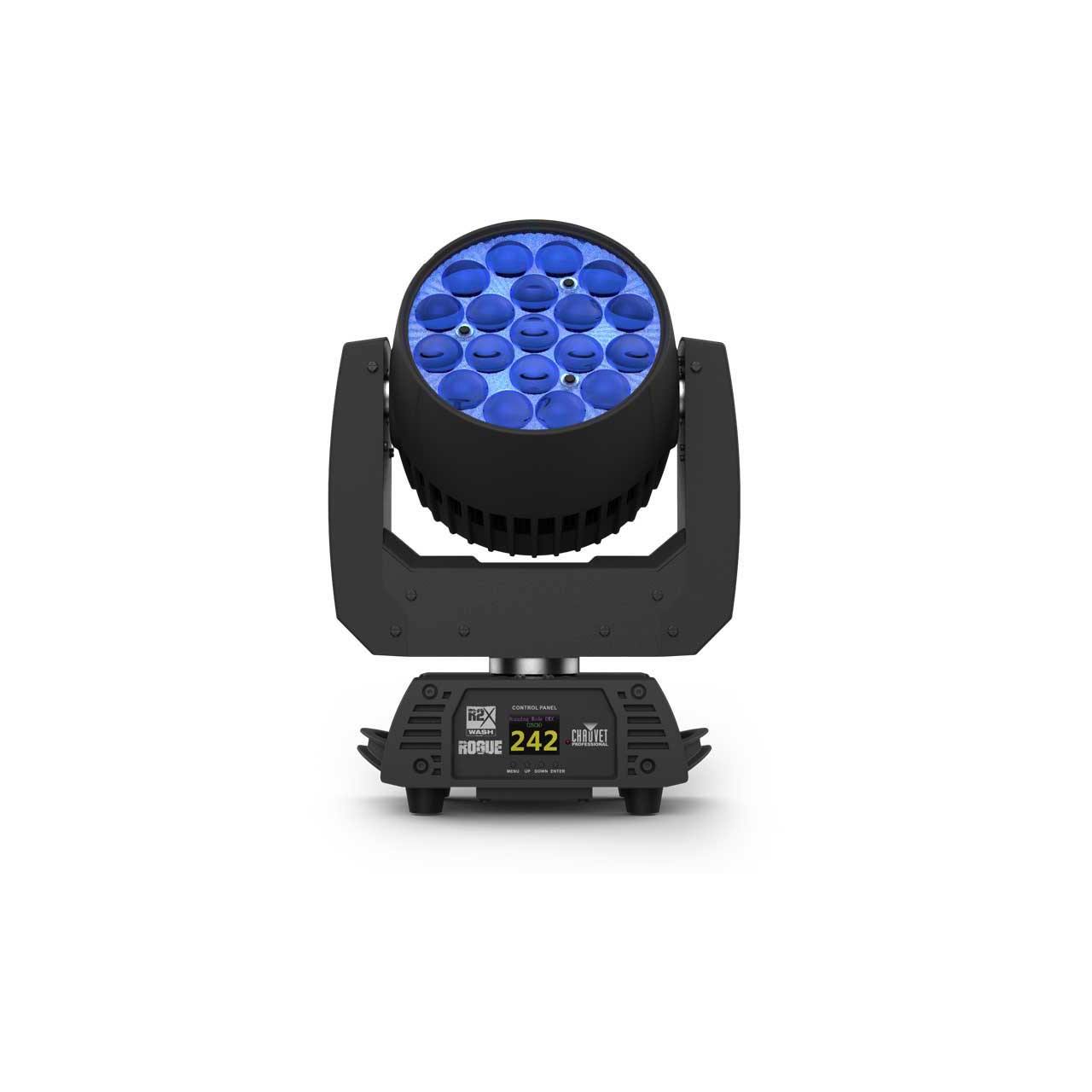The Chauvet Rogue R2X Wash is a vital addition to your rental and production inventory. Durable and dependable, this moving wash workhorse produces a bright, powerful light and offers five zones of LED control to pixel map its 19 (25 W) RGBW quad-LEDs. Featuring a standout zoom range of 12° to 49° the Rogue R2X Wash gives you the spread to cover even the largest areas. Smooth color mixing, simple and complex DMX channel profiles and powerCON in and out are just some of the other features that make this fixture a standout performer in any setting.