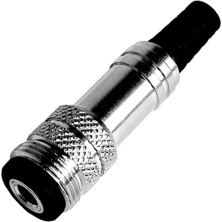 Calrad 30-297J nickel plated locking inline 3.5mm Female Stereo Audio Jack. Nickel chrome body. Mates to 30-296J (Plug).