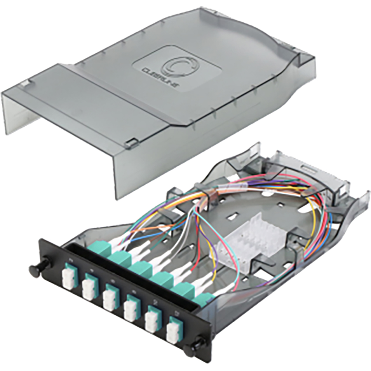 Cleerline SHDLC12-MM HD Splice Cassettes provide an efficient solution for managing fusion-spliced fibers. Each cassette comes preloaded with 6-24 x 900µm 1-meter-long fiber pigtails, eliminating the need for a separate splice tray. Inside the cassette, splice holders and a cable winding area allow cable management and organization. This not only allows managing splices but can also be utilized to separate network environments, (i.e. MDF, IDF1, and IDF2) for ease in troubleshooting without disrupting all other Cassettes or Fibers. Cleerline HD Splice Cassettes have a removable transparent cover to allow easy fiber verification. All cassettes include heat shrink tubes for splice protection and cable ties. Splice cassettes are available preloaded with OM3, OM4 (multimode) or OS2 (single-mode) fibers. OS2 APC (angled polish connector) configuration is also available.