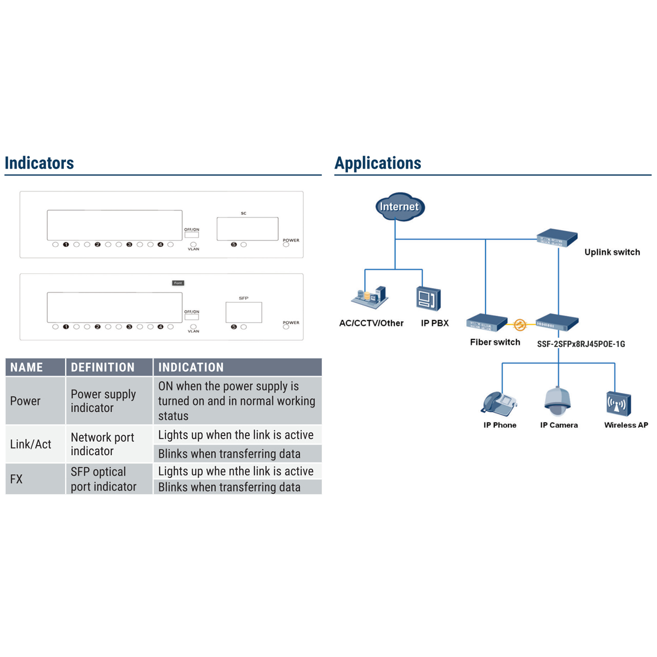 In addition, the PoE+ switch automatically determines PoE+ requirements, speed, duplex, and cable type using Auto Uplink. Easy to operate and reliable. The PoE+ switch is ideal for powering PoE+ devices such as IP cameras, WLAN access point, IP phones, office access control systems, and other PD devices. This switch helps to provide an overall solution for Ethernet applications in different environments.
