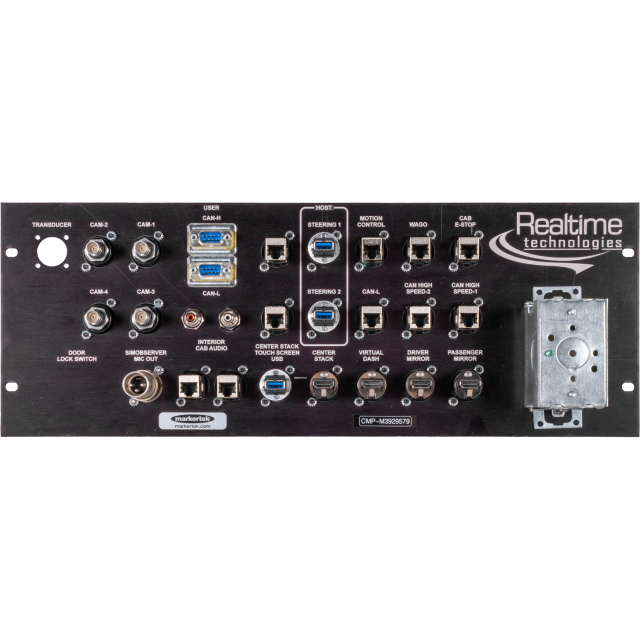 This 4RU custom panel features many different connections such as RJ45, USB, XLR, BNC, and HDMI.