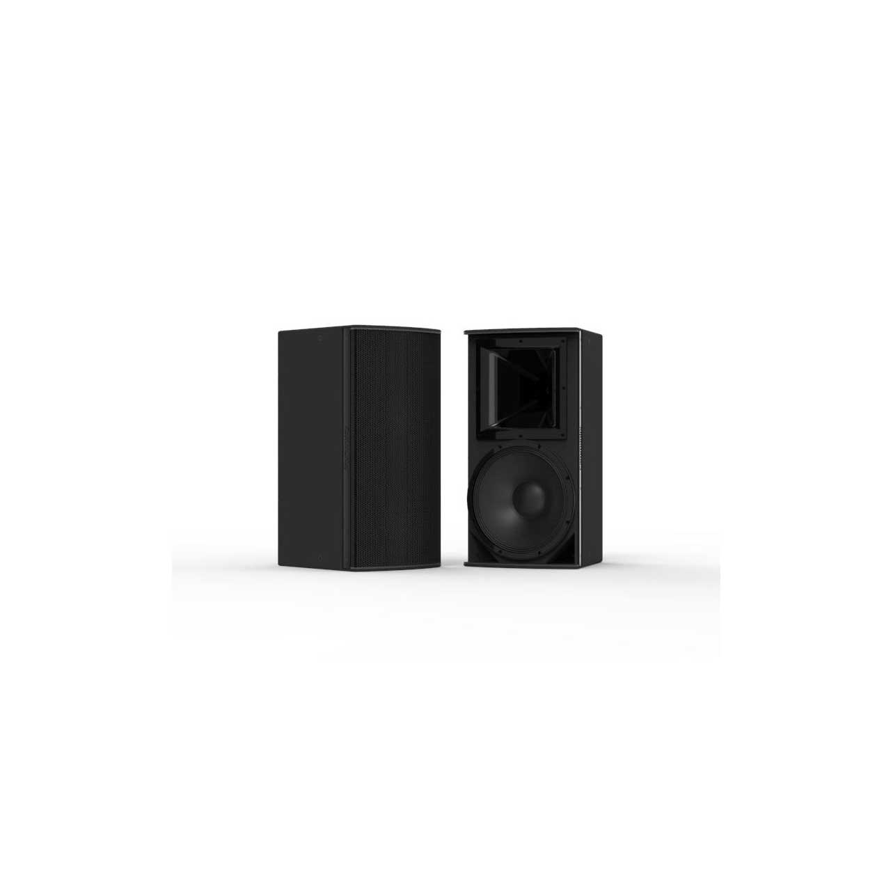 Trapezoidal enclosure, solid birch plywood cabinets with discreet styling. High power, 800W continuous power handling, 12-inch (305mm) neodymium woofers with 3-inch (76mm) voice coil, and 1.4-inch exit ketone polymer diaphragm neodymium HF driver. Rotatable constant-directivity horns. User selectable passive or biamp operation. Easily configured low profile rigging hardware available for multiple applications (see Accessories).