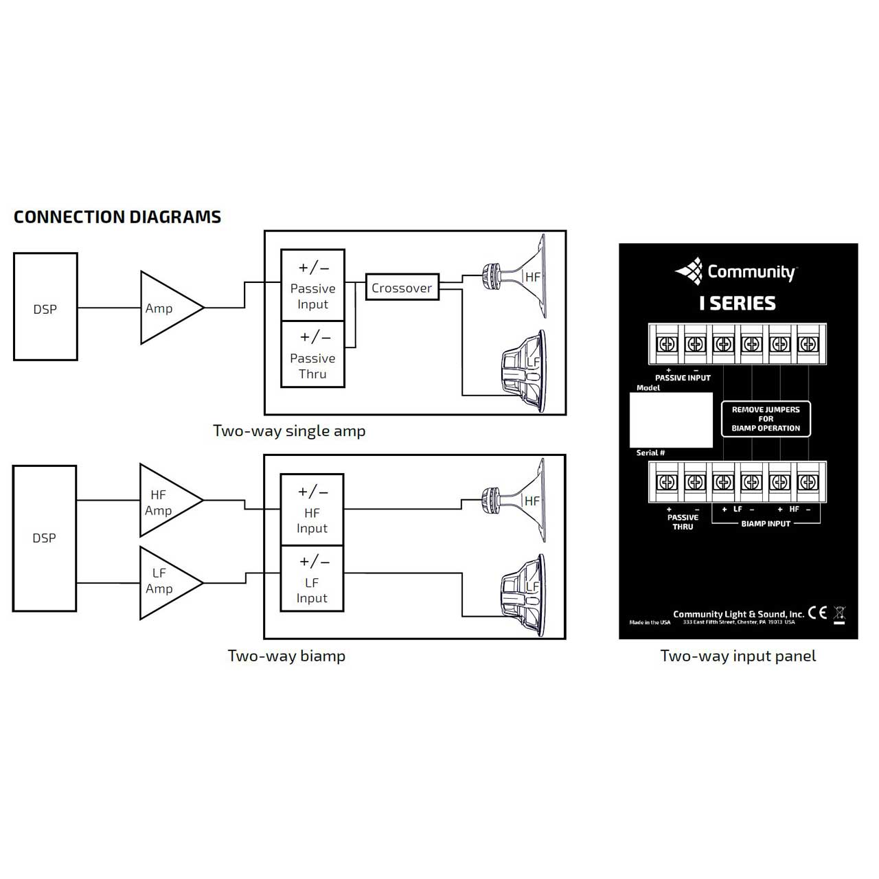 • Operating Mode: Passive or Biamp with DSP.