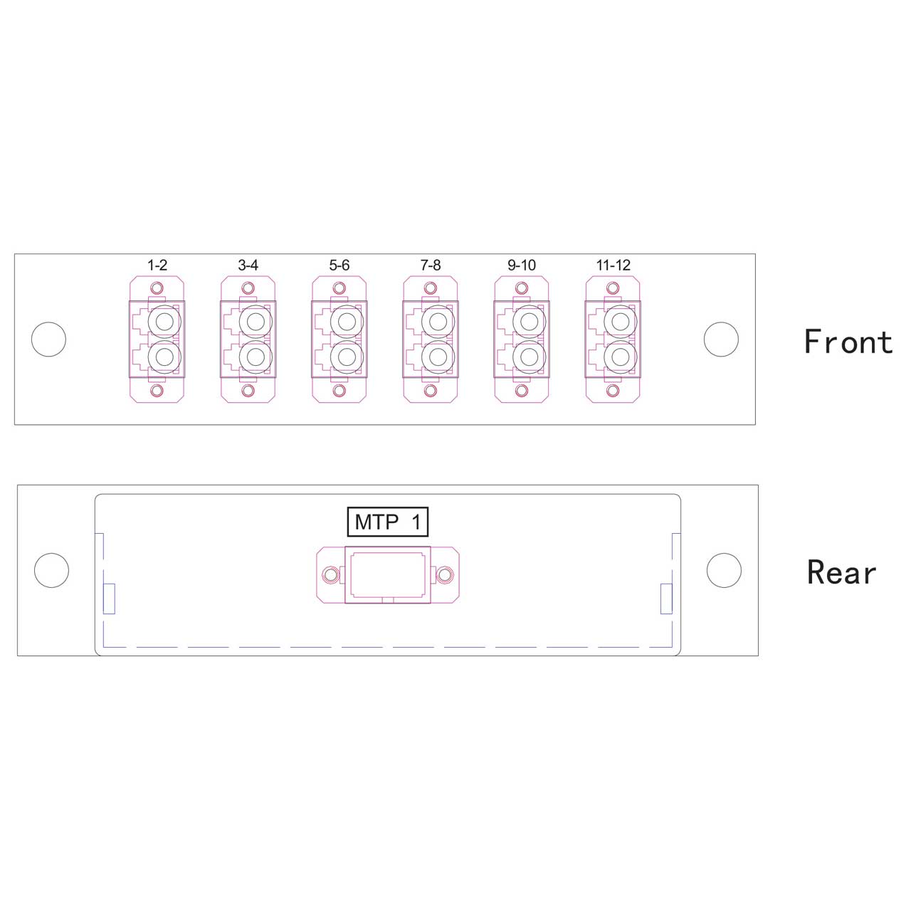 Available with 12 or 24 fibers, singlemode or multimode (50 or 62.5Μm), SC or LC connectors on the front.