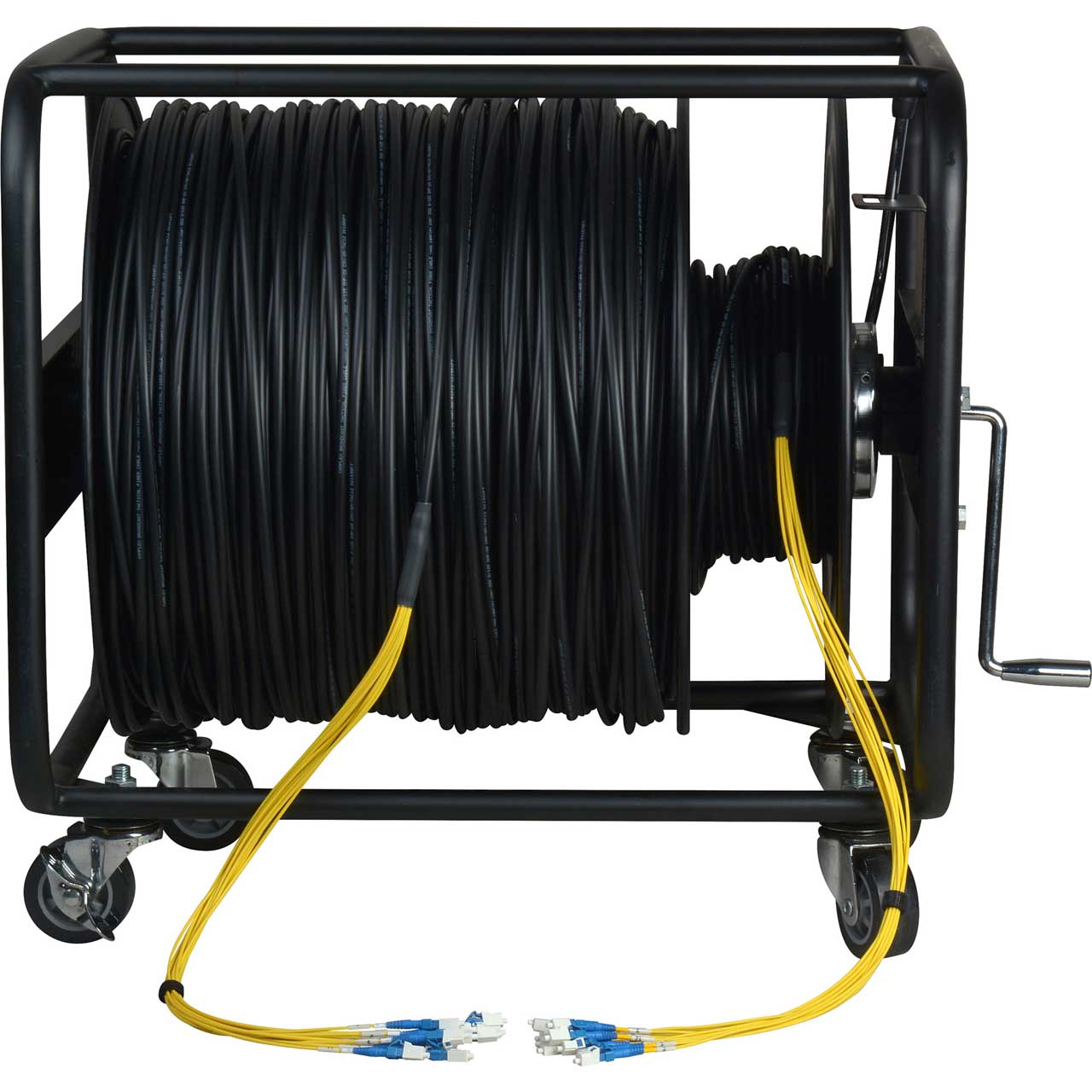 Ruggedized multi-channel fiber optic cables designed for multiple deployments for field production in outside broadcast, rental houses and more. Highly flexible tight-buffered tactical cables with internal aramid strength members for crush resistance in high traffic areas if handled properly and a polyurethane outer sheath designed to withstand crushing by both military tanks and Outside Broadcast vehicles. All assemblies multi-stage machine polished and tested for <.55db RL with test results for each channel supplied with each cable. Built in-house at our state-of-the-art trained fiber shop with full repair services available.