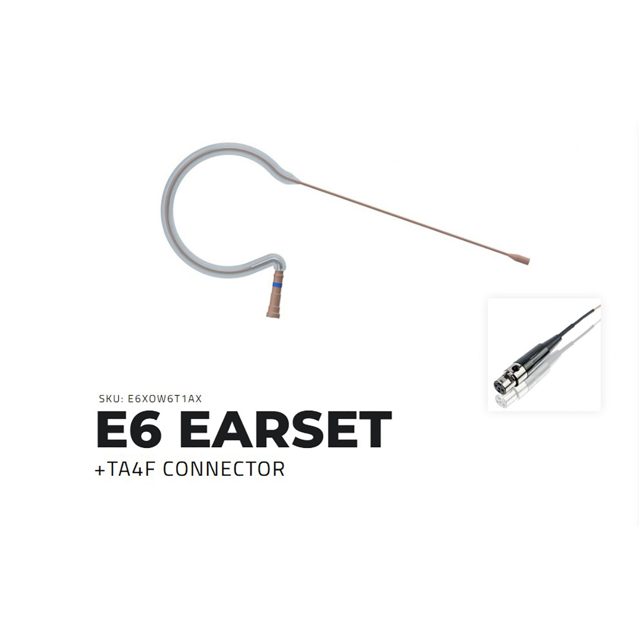 Countryman E6XOW6T1AX, Shure: Axient AX100, (X) Flexible boom and springy ear section, (O) Omnidirectional, (W6) For speaking and vocals, (T) Tan, (1) 1mm aramid-reinforced cable, E6 Earset M