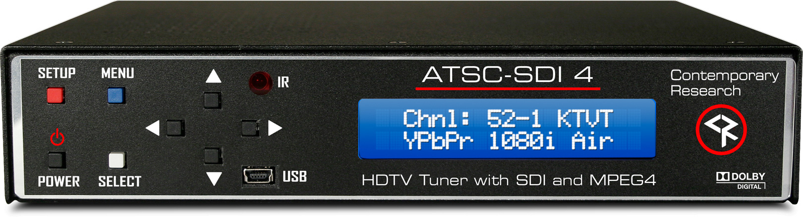 A universal TV tuner, the ATSC-SDI 4 can receive both analog and digital channels, in ATSC, NTSC, and clear QAM formats. Using an optional RF switcher, the tuner can switch between Antenna and Cable feeds.