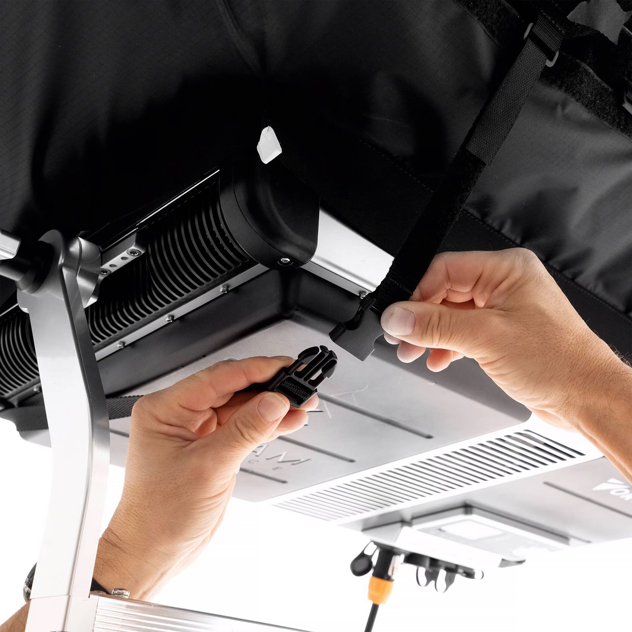 One of the standout features of the DoPChoice Airglow Booklight is its interchangeable interior panel, which provides even more flexibility in shaping your light. Whether you need a softer or punchier lighting effect, you can easily adjust the interior to achieve the desired result. The light modifier is designed for ease of use, featuring two adjustable straps and buckles for secure attachment to the Vortex8 or Vortex8S LED lights, eliminating the need for additional brackets or speed rings. For added convenience, the inflatable AIRGLOW frame can be filled or deflated while attached to the light panel or detached from it. It comes with a dedicated DoPchoice bag, complete with an air pump, ensuring easy storage and transport.