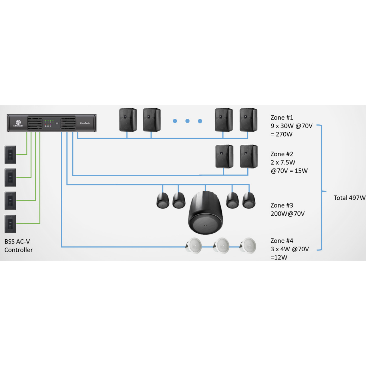 Built-in DSP allows outputs to be tuned specifically for every application and provides the ability to create custom speaker tunings. Factory JBL SpeakerTunings for select JBL models, including Control 400 Series ceiling speakers, are included to simplify the optimization of an all-HARMAN solution.