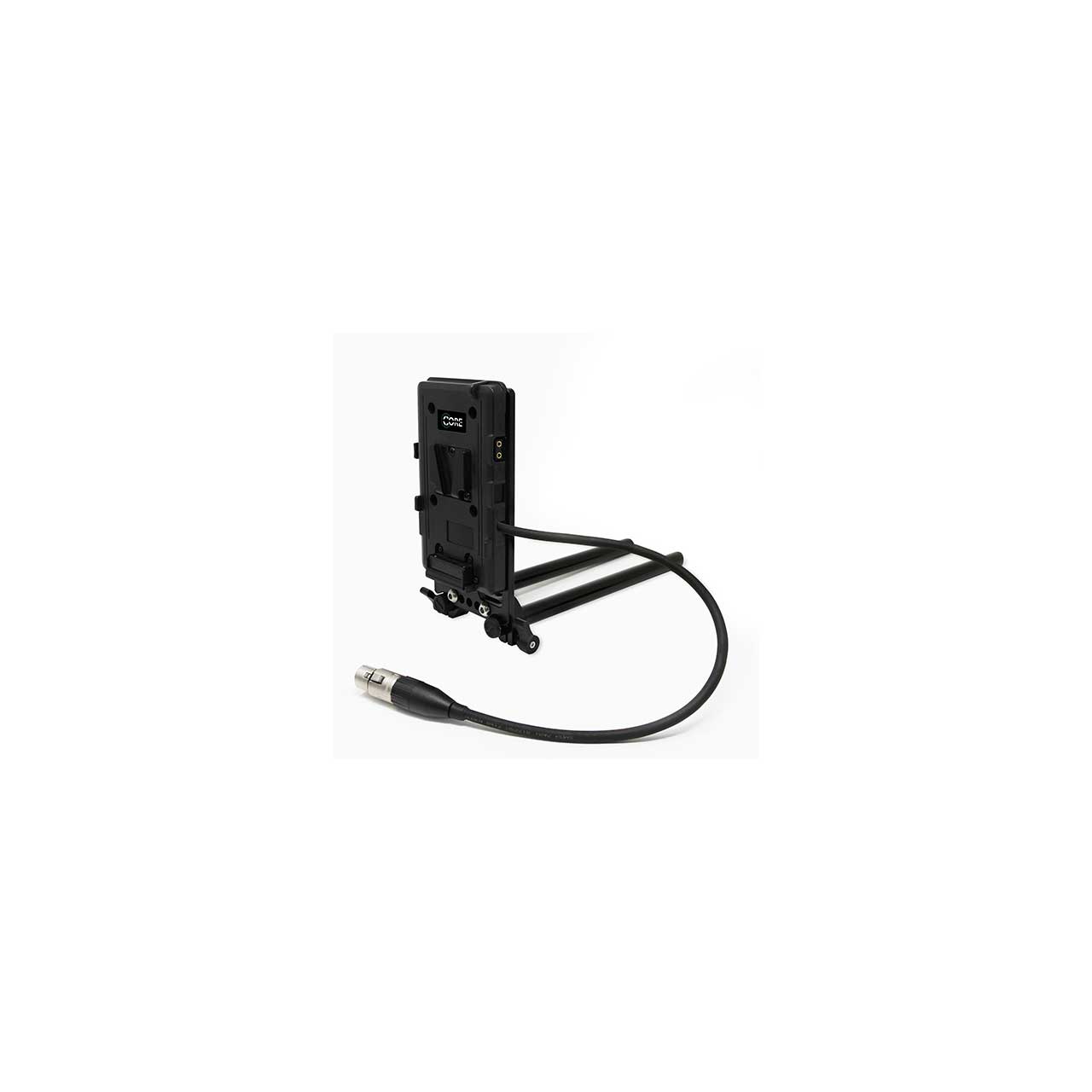 The Core SWX RMV-XLR is a 15mm rod mount bracket with v-mount battery plate. The bracket works with all v-mount battery packs to provide a secure mounting surface for your rig setup. The Cheese Plate can be configured to mount vertically or horizontally, based on balance preference. The system is terminated with a 18" 4-pin XLR cable to power your XLR powered cameras and devices as well as one p-tap output for powering accessories.
