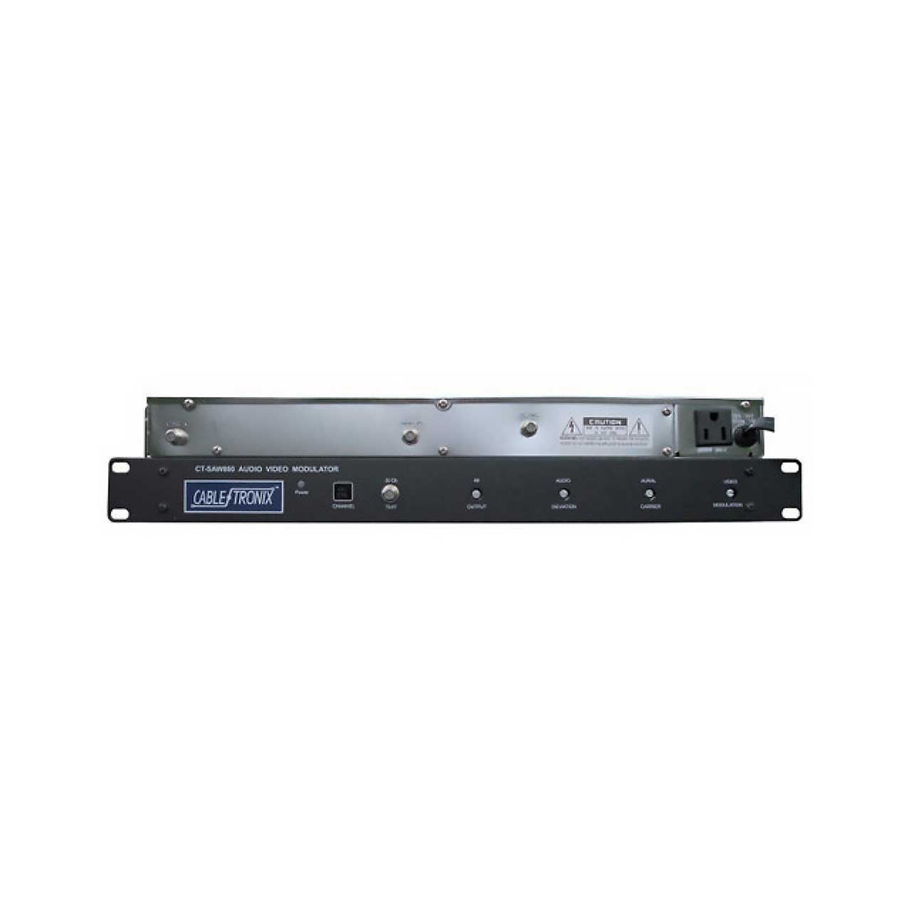 The CT-SAW860 is a professional quality fixed channel 19" rack mounted modulator providing an audio and video modulated RF carrier for any single channel between 2 and 127 CATV. Any standard audio/video source can be used, including satellite receivers, demodulators, VCRs, laser/DVD players, and TV/security cameras.