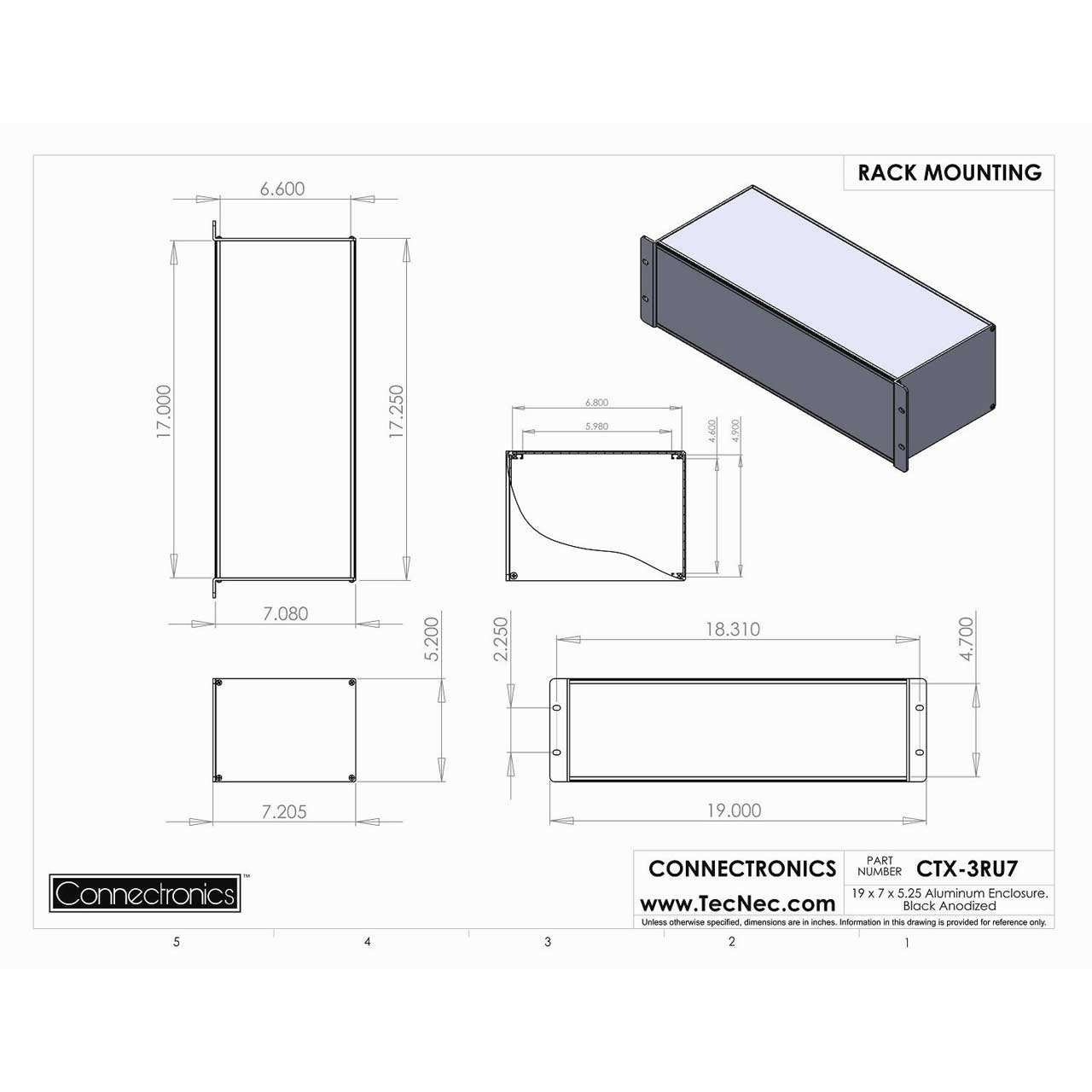 Connectronics CTX-3RU7 3RU Rack Mount Enclosure with Aluminum Chassis - 19-Inch x 7-Inch x 5.25-Inch