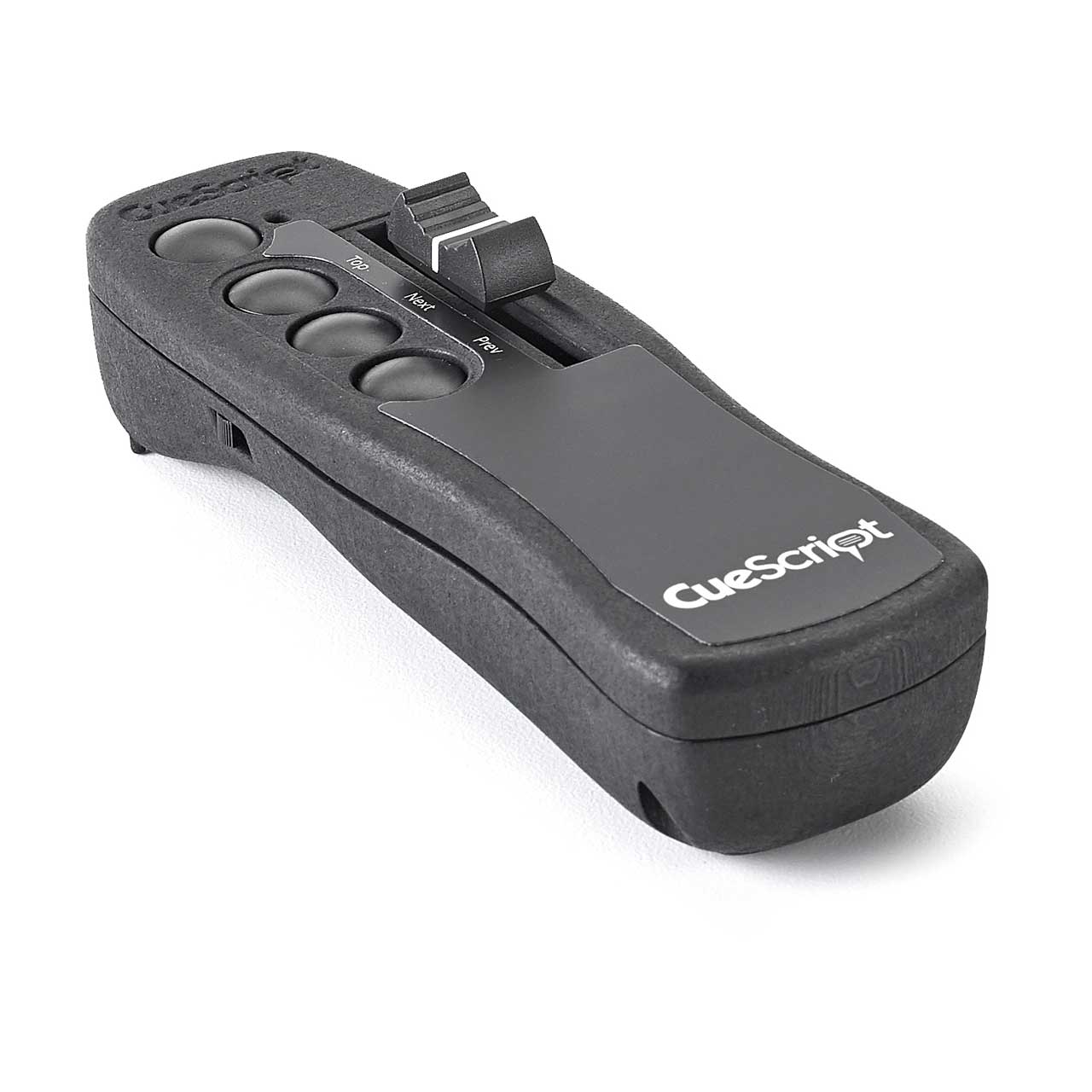 CueScript's CSSCW wireless hand control is a hand-held device designed to be used by the presenter/speaker to adjust the speed and direction of scrolling text on the prompter.
