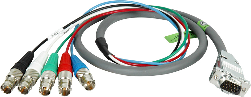 TecNec broadcast spec HD-15 to 5 BNC Female 6 inch molded breakout cable.