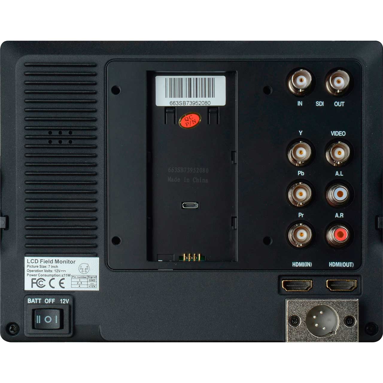 DELV-WFORM-7SDIVM, with a V-Mount Battery Plate, is a 7 inch 16:9 metal framed LED field monitor with 3G-SDI, HDMI, YPbPr (via BNC), Composite video and a collapsible sun hood. It is optimized for full HD camcorders and provides advanced camera auxiliary functions: Color/RGB Histogram, Waveform, Vector Scope, Audio Level Meter, Peaking, False Color, Histogram & Exposure.