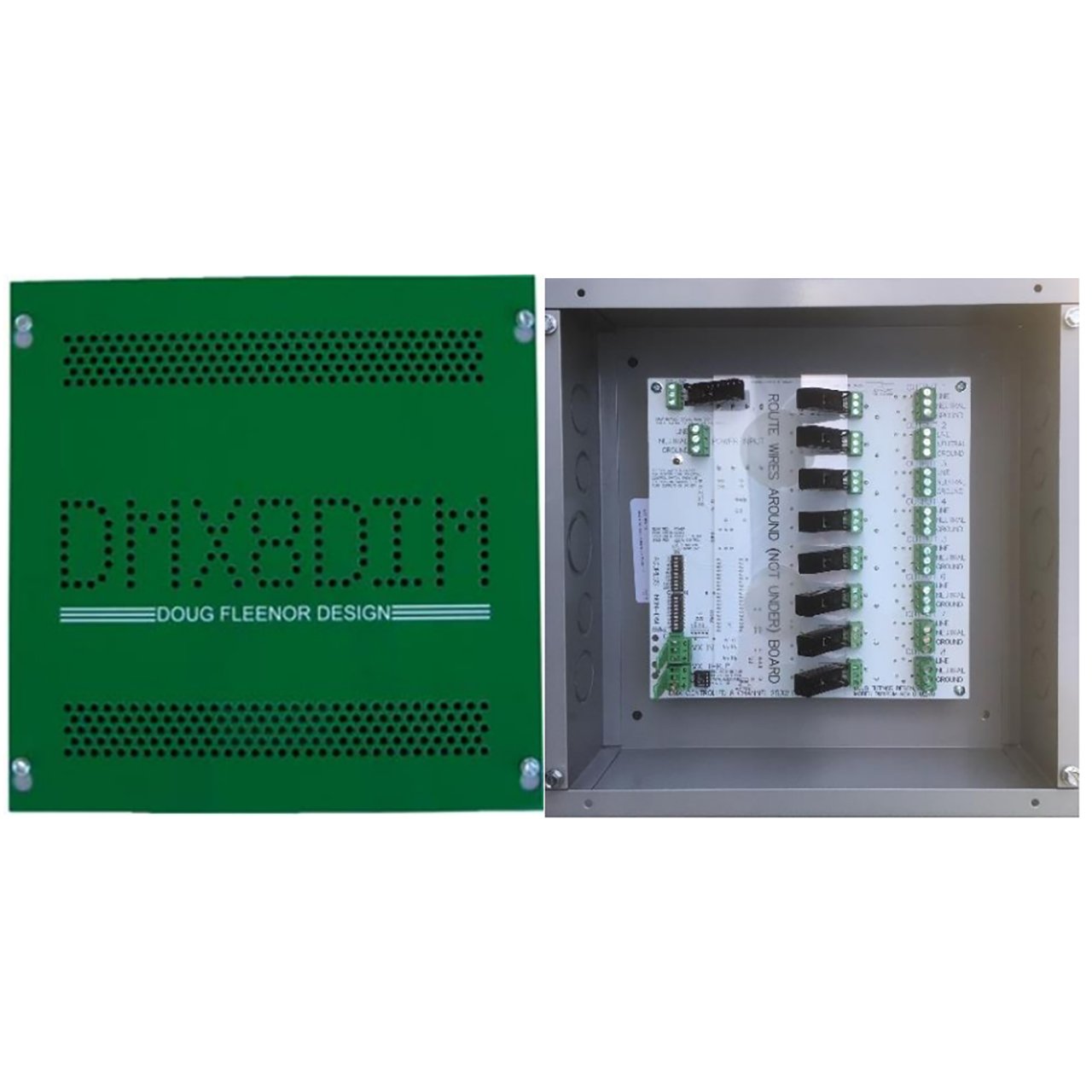 The Doug Fleenor Design DMX8DIM is an eight output 'green' dimmer designed for minimal losses, low idle power (less than 1 Watt), and low maintenance (no fans or air filters).