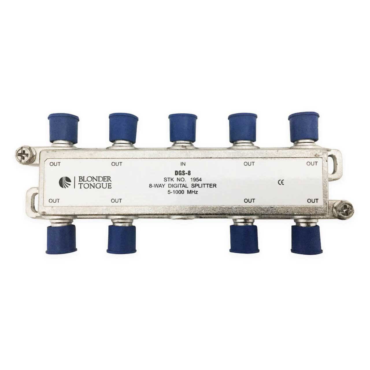 The Blonder Tongue DGS-8 is a 8-Way indoor digital-ready splitter. It features an in-line style with a solder back, and has a frequency range of 5 - 1000MHz.